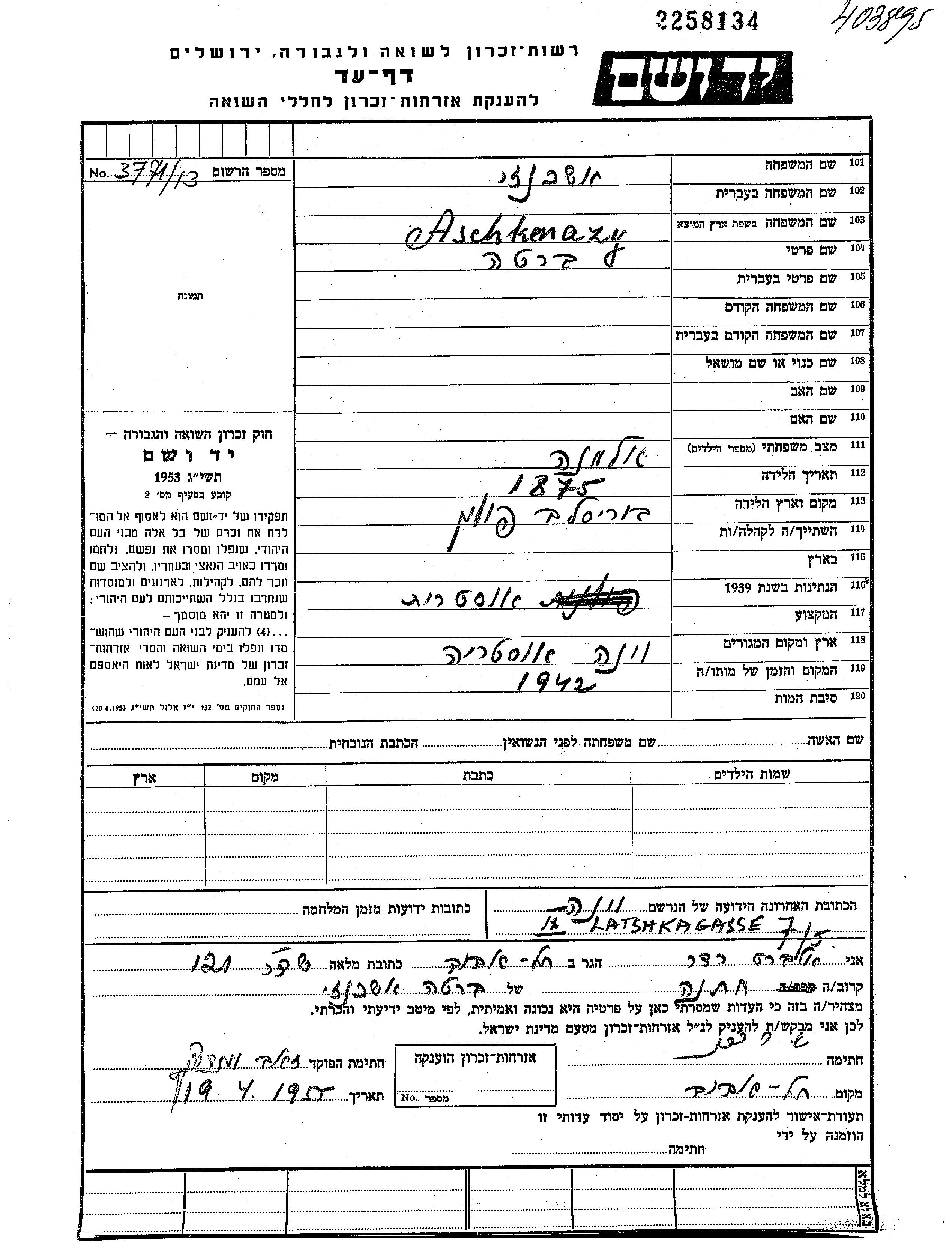 Yad Vashem - Pages of Testimony Names Memorial Collection