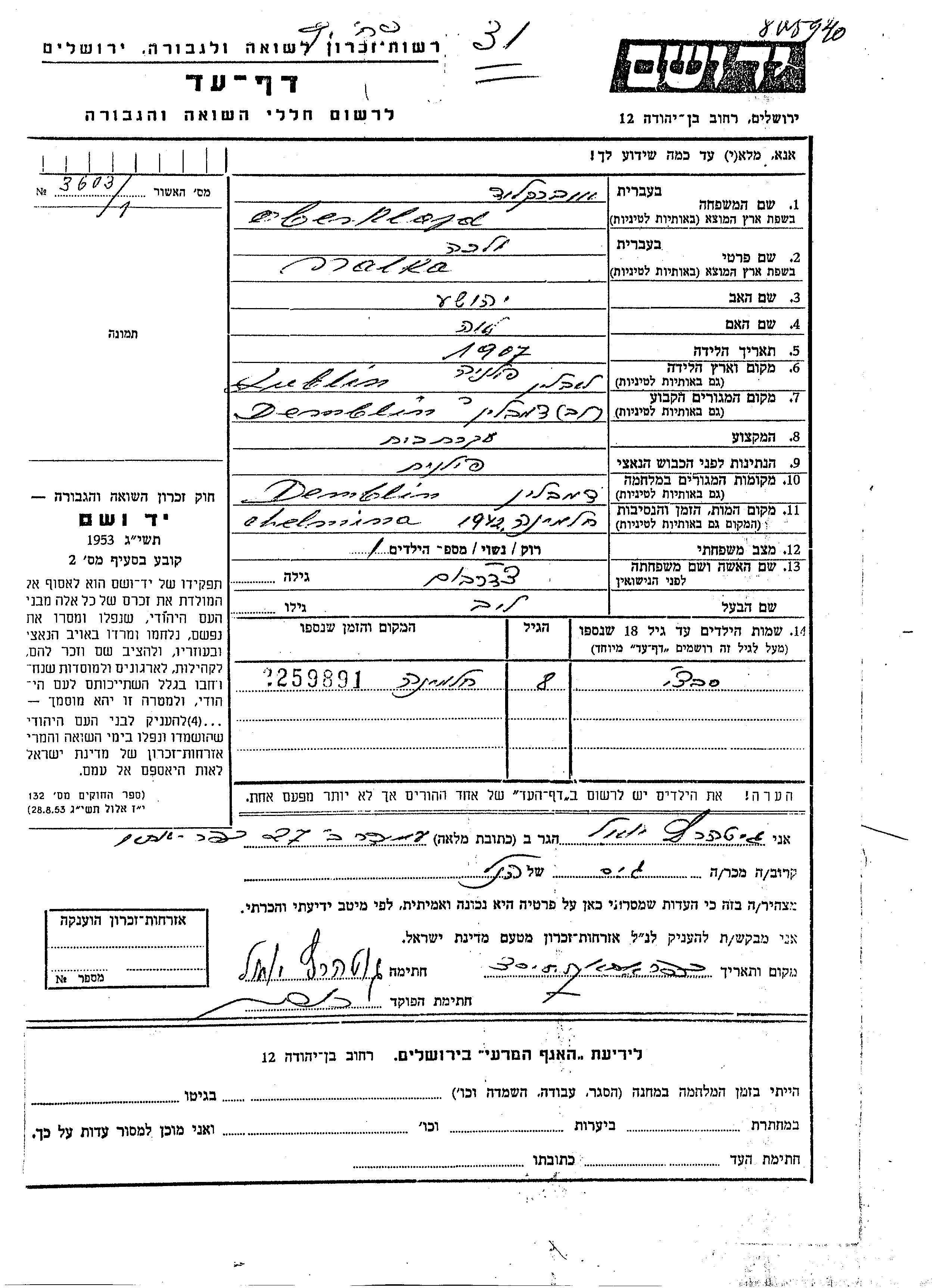 Yad Vashem - Pages of Testimony Names Memorial Collection