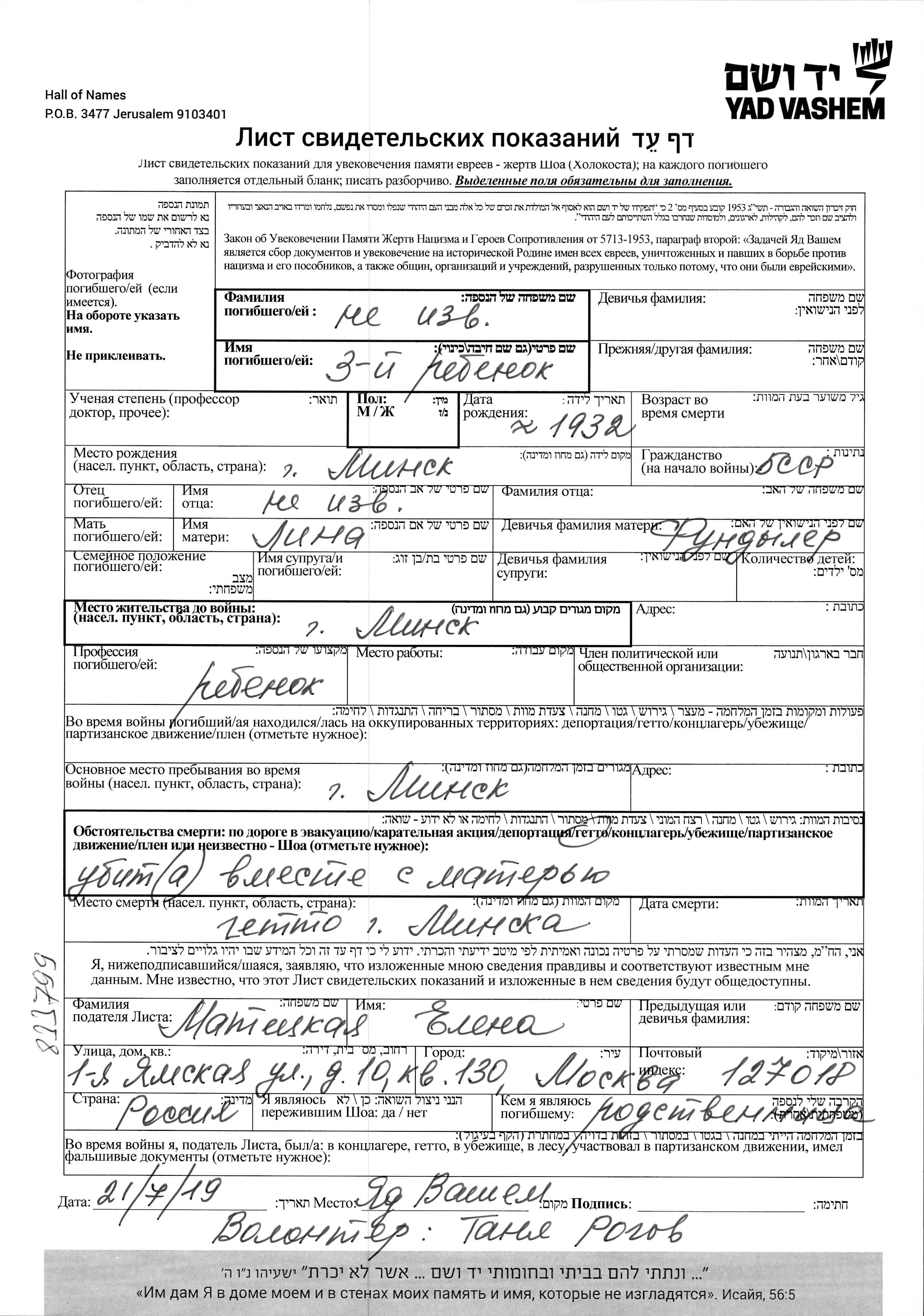 Yad Vashem - Pages of Testimony Names Memorial Collection