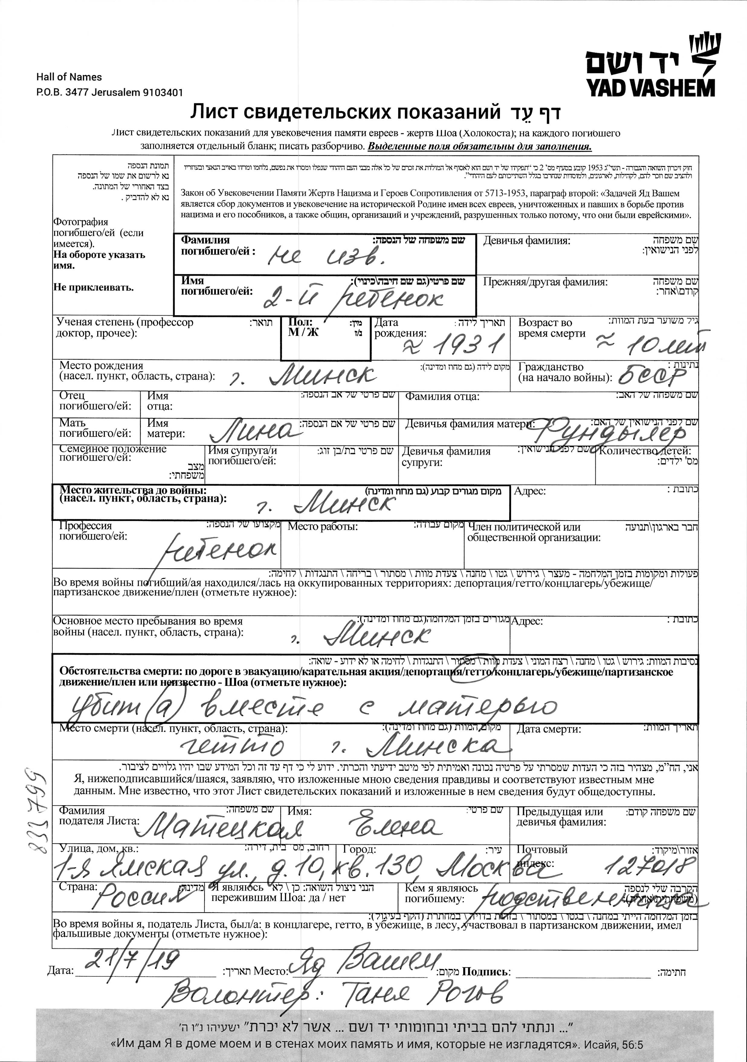 Yad Vashem - Pages of Testimony Names Memorial Collection