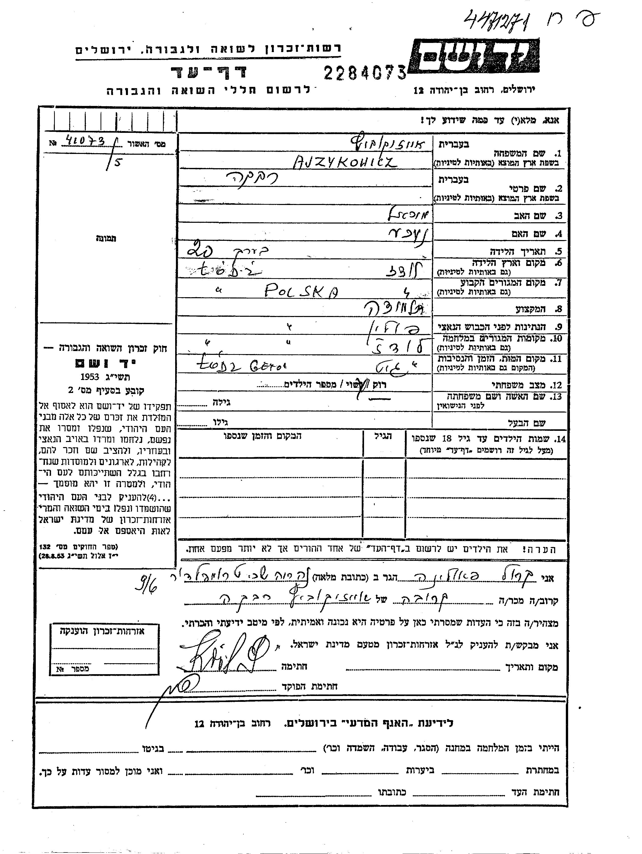 Yad Vashem - Pages of Testimony Names Memorial Collection