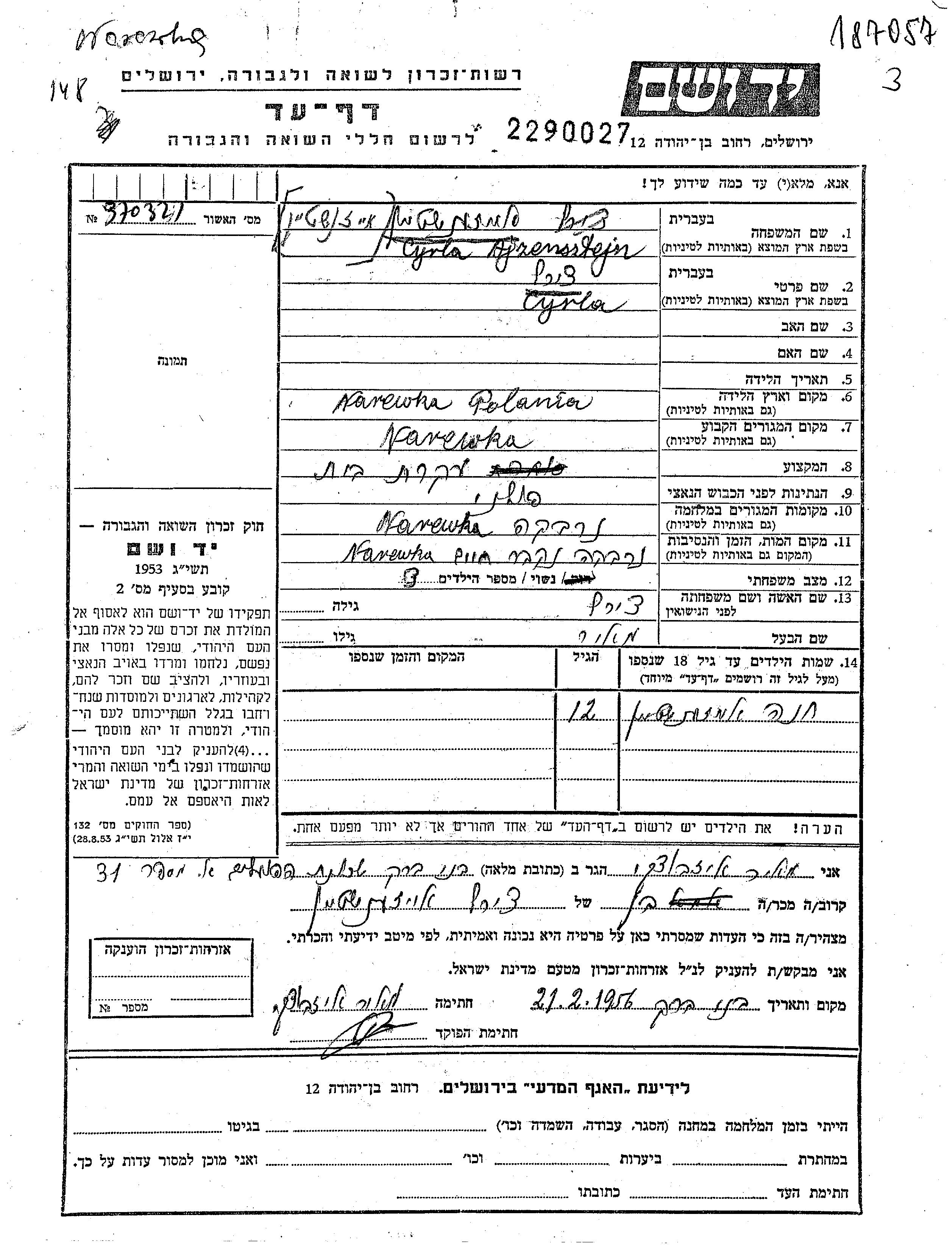 Yad Vashem - Pages of Testimony Names Memorial Collection