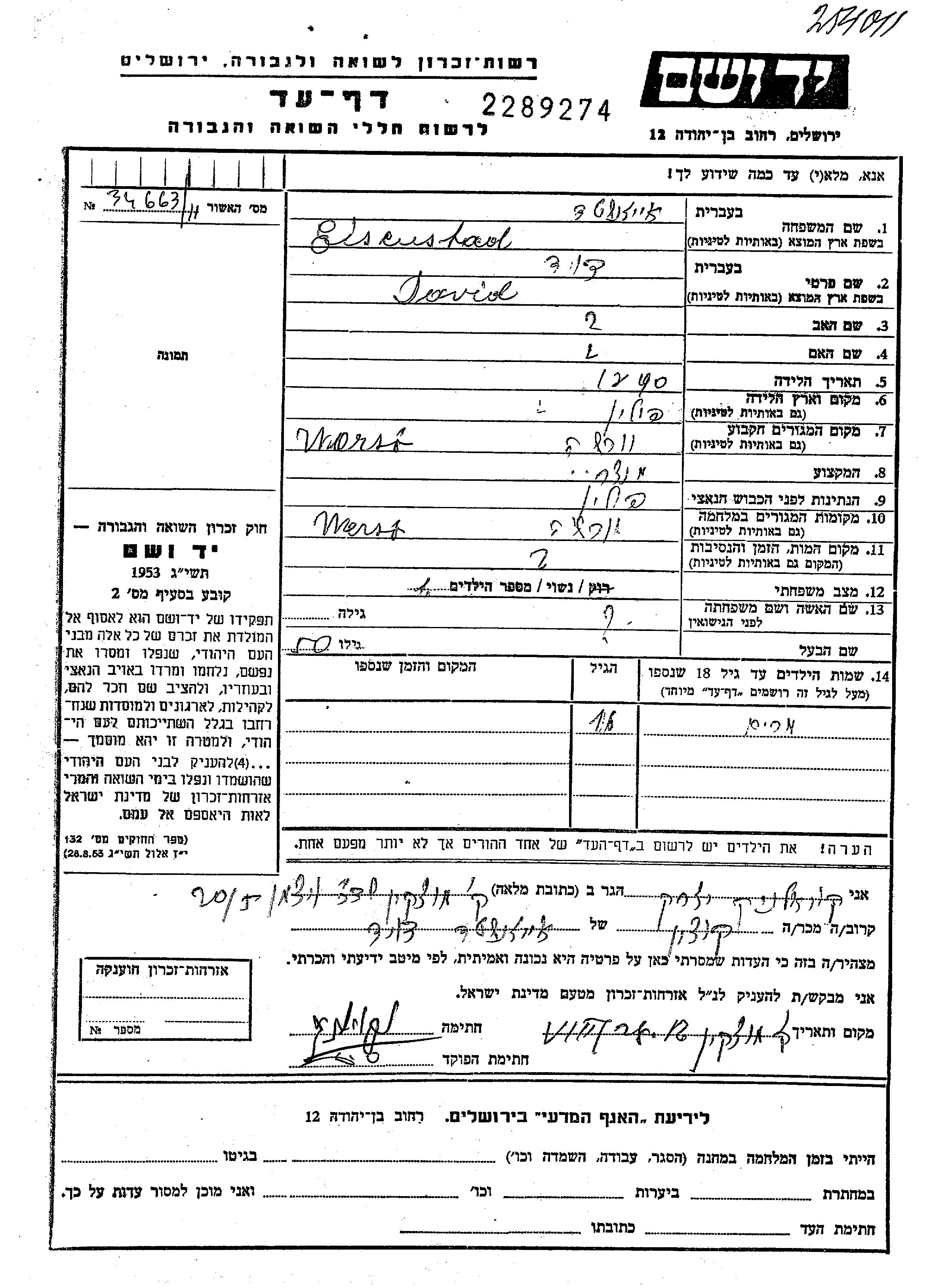 Yad Vashem - Pages of Testimony Names Memorial Collection