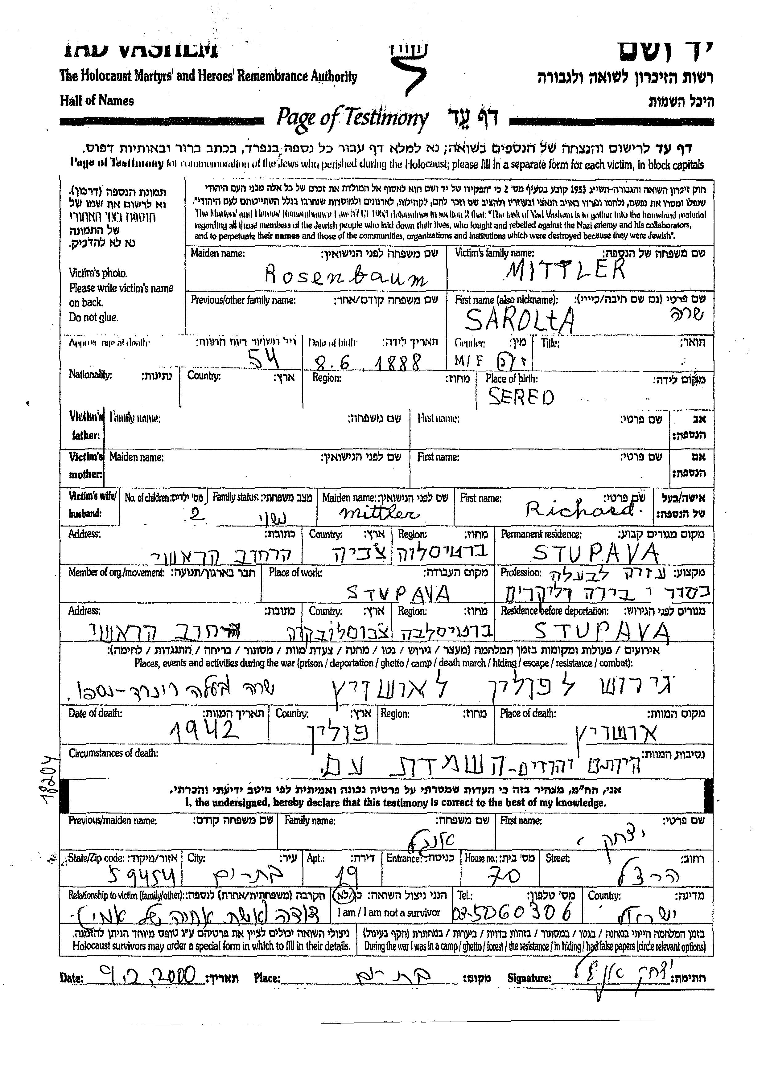 Yad Vashem - Pages of Testimony Names Memorial Collection