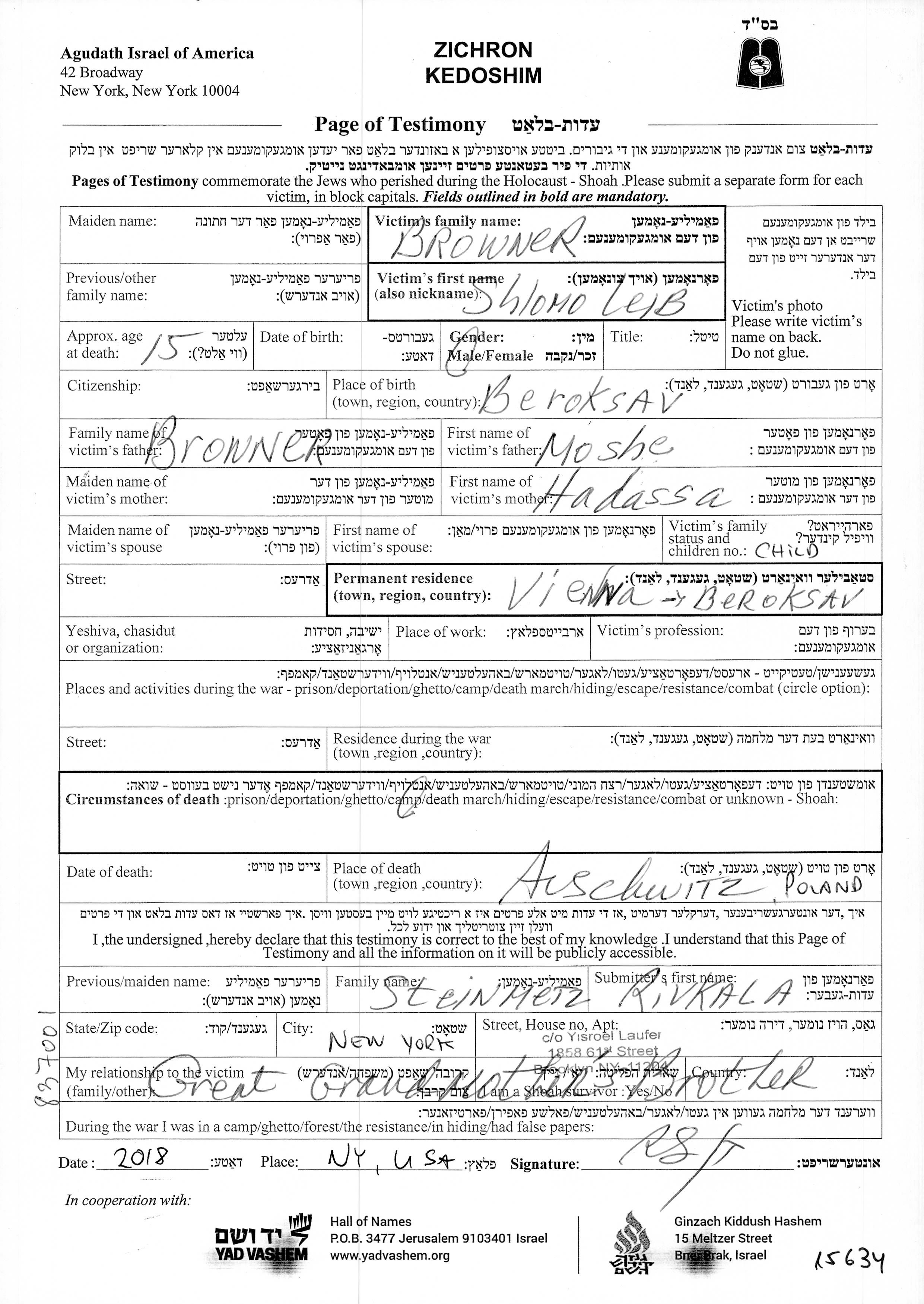 Yad Vashem - Pages of Testimony Names Memorial Collection