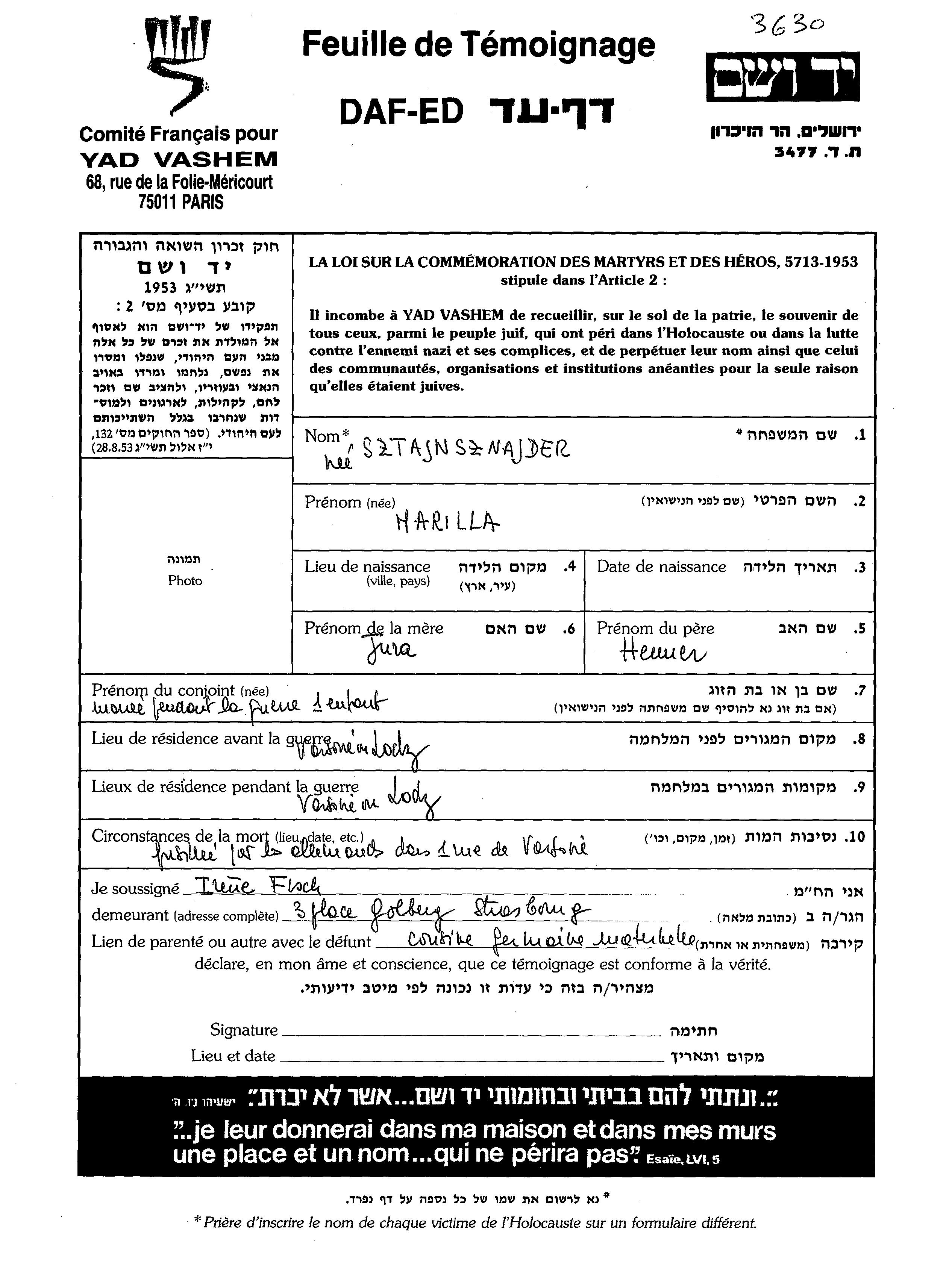 Recherche par nom du dépositeur de la Feuille de témoignage. Cette recherché indique aussi les noms de jeunes filles.