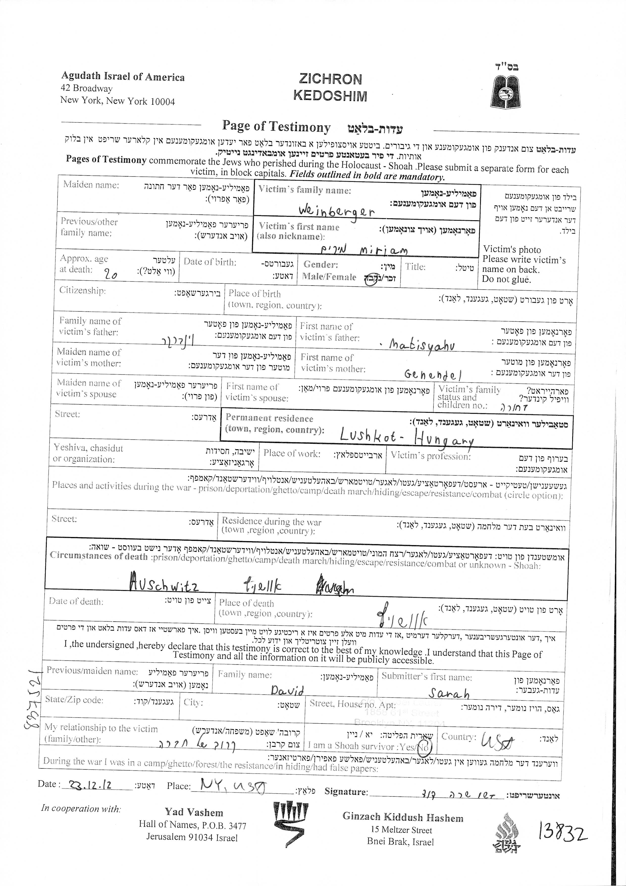 Recherche par lieu de résidence permanente avant la Shoah, ville, village, département, région ou pays.