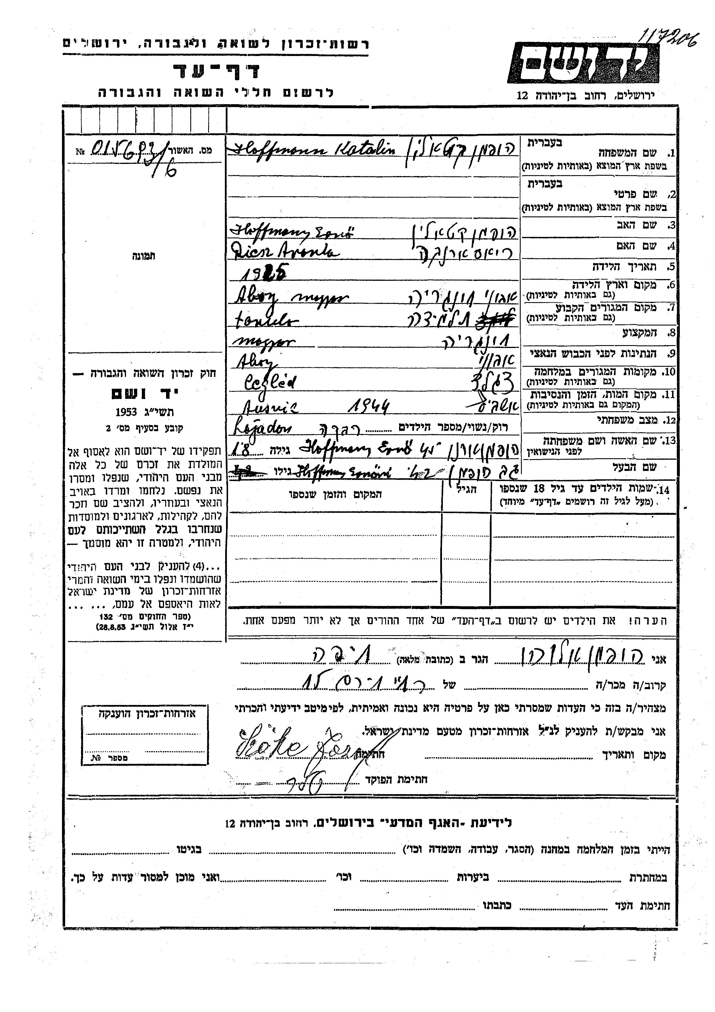 Hoffmann Katalin 1925 Abony, Hongrie Feuille de témoignage