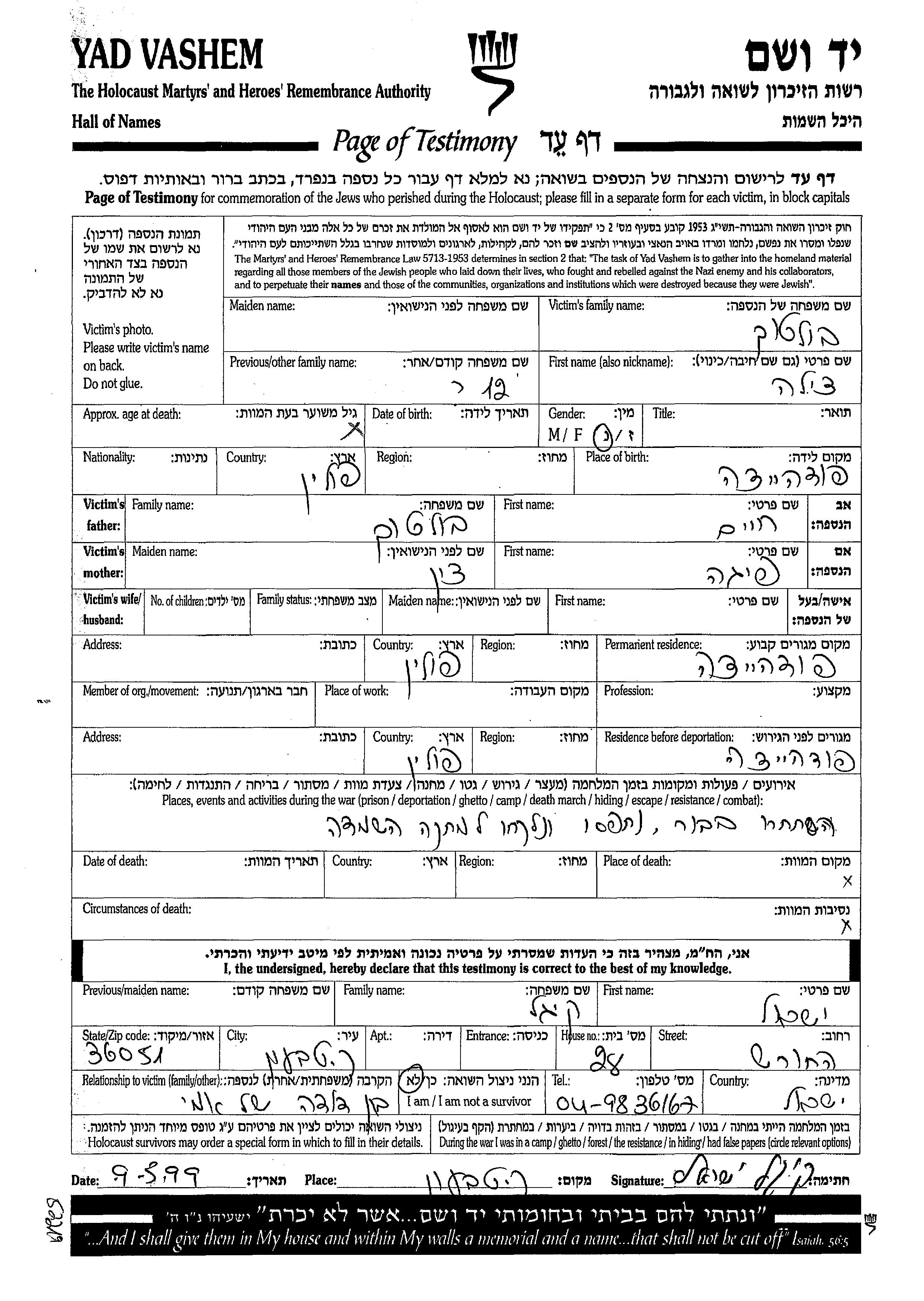 Boltukh | Tzila | Podhajce, Pologne | Feuille de témoignage | |