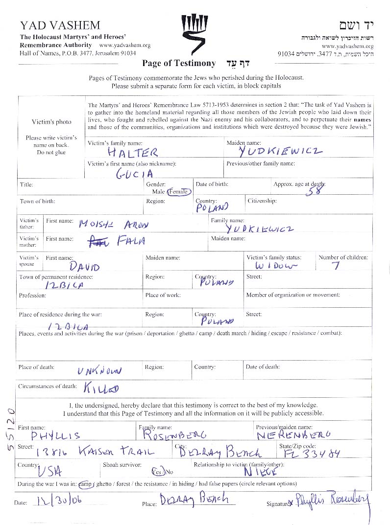 Yad Vashem - Pages of Testimony Names Memorial Collection