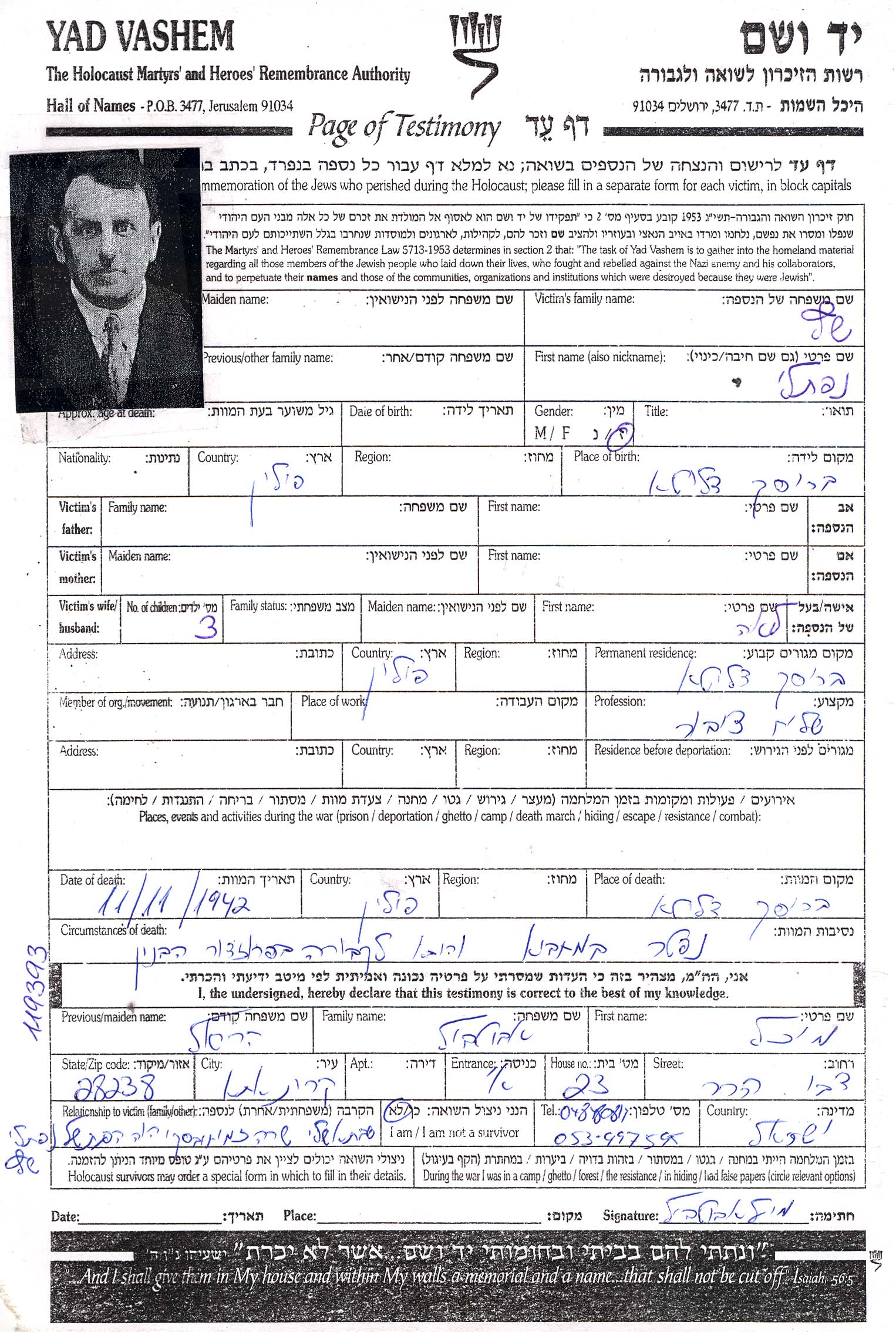 Yad Vashem - Pages of Testimony Names Memorial Collection