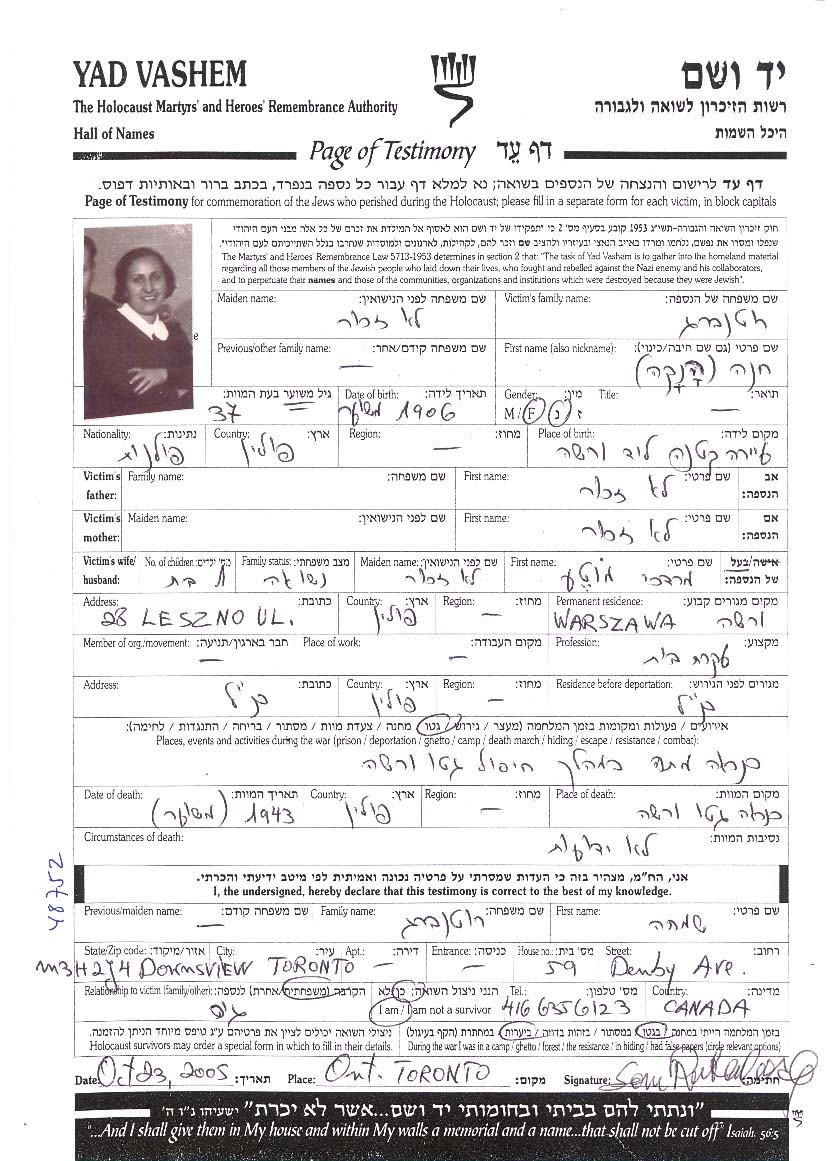 Rotenberg | Anka | Warszawa, Pologne | Feuille de témoignage | |
