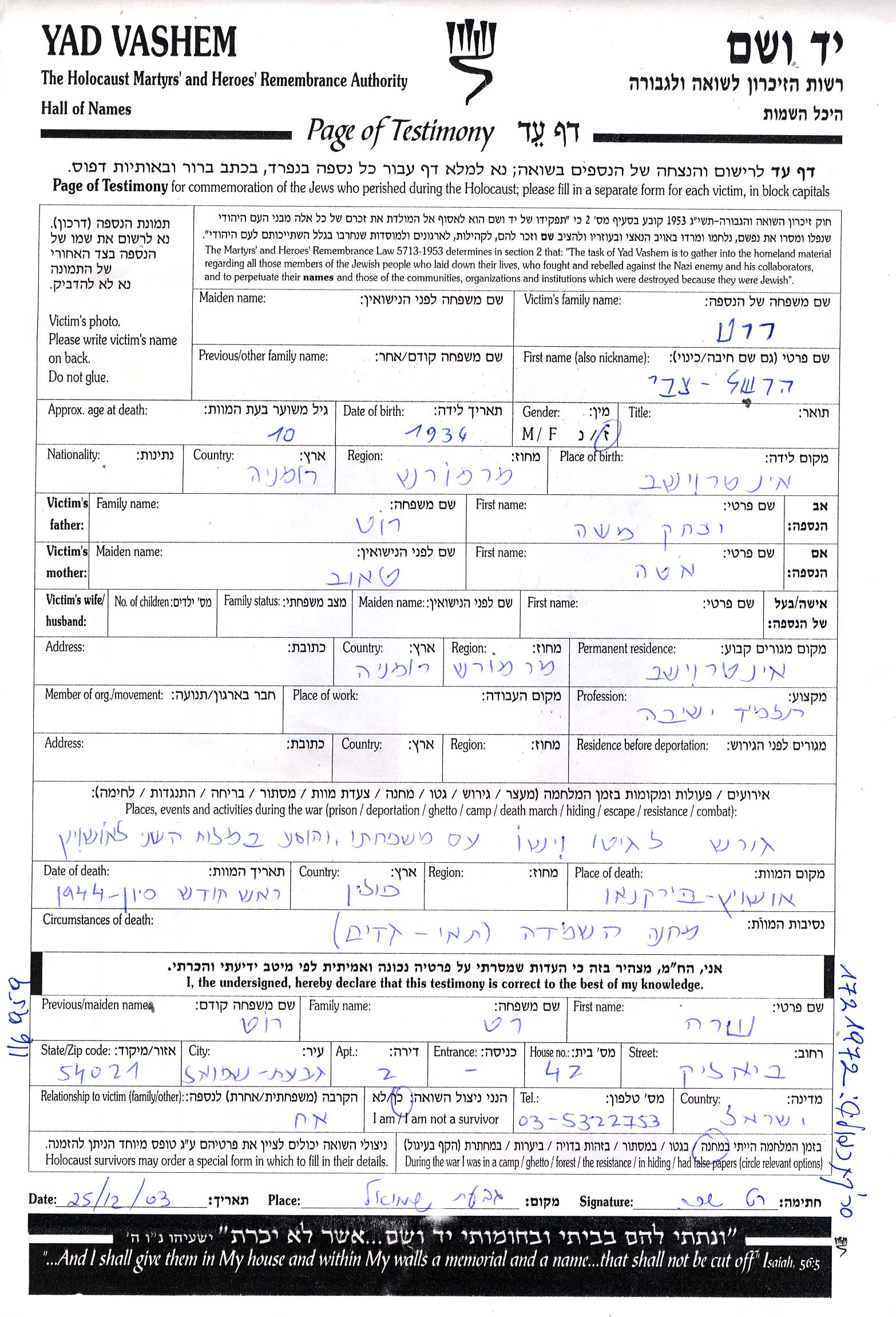 Yad Vashem - Pages of Testimony Names Memorial Collection