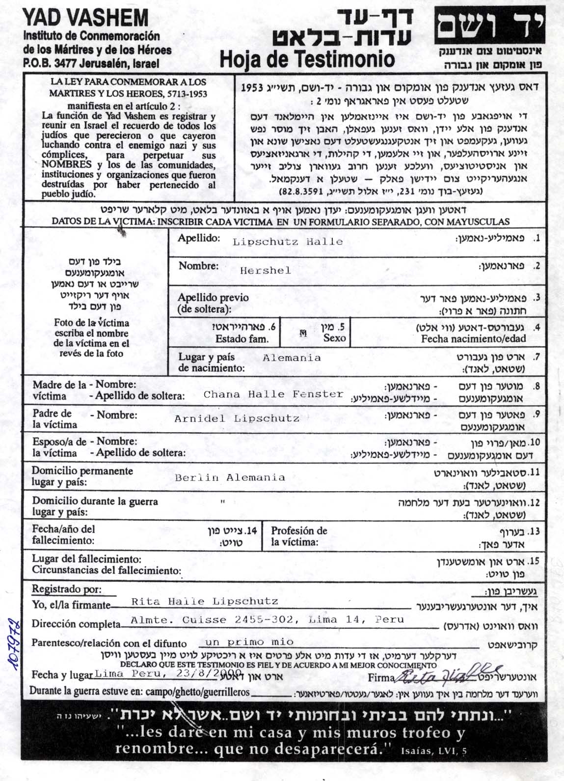 Abraham Herschel Joshua Lipschutz est né à Berlin, Allemagne. Il était Agent de vente. Avant la seconde guerre mondiale il vivait à Warszawa, Pologne.