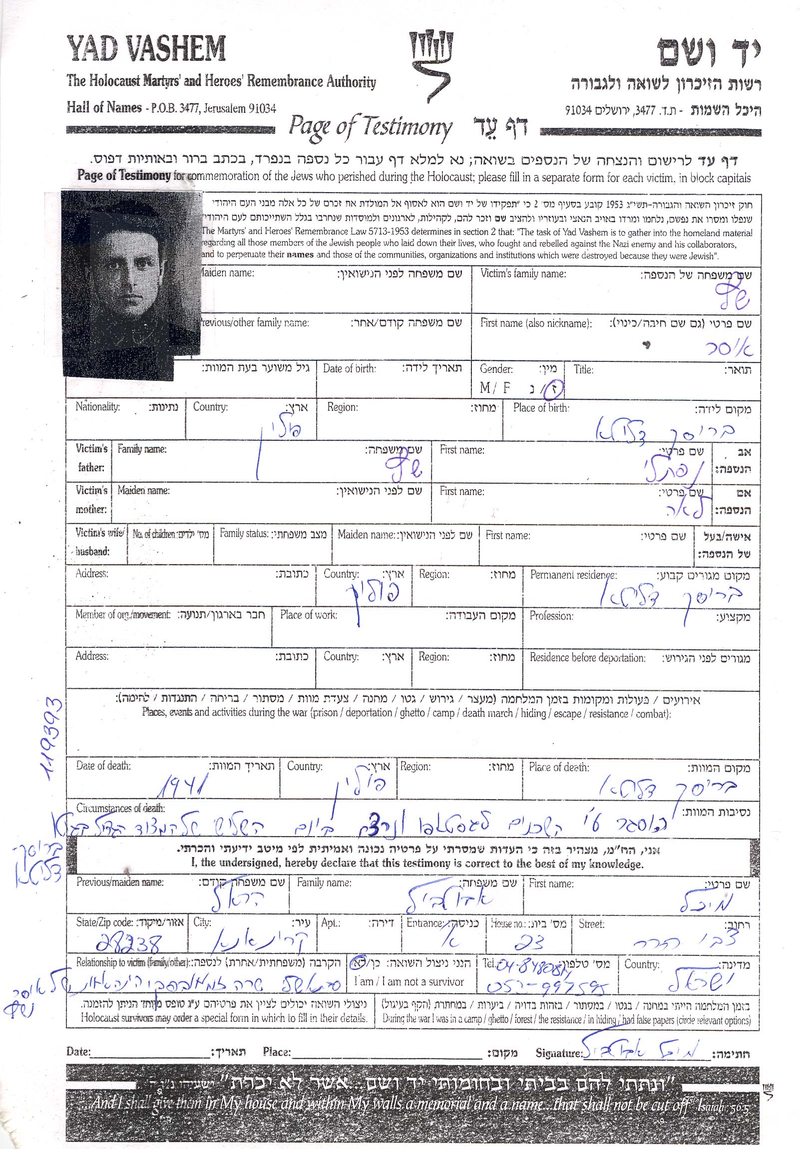 Yad Vashem - Pages of Testimony Names Memorial Collection