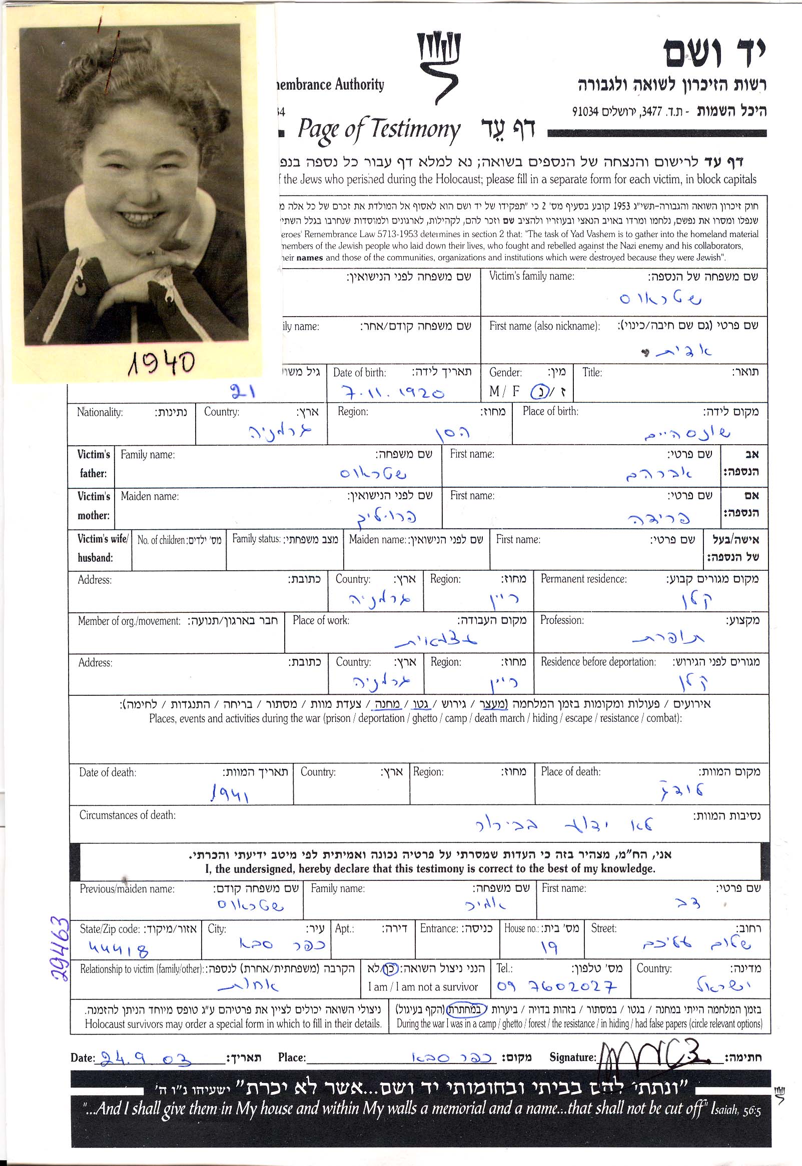 Yad Vashem - Pages of Testimony Names Memorial Collection