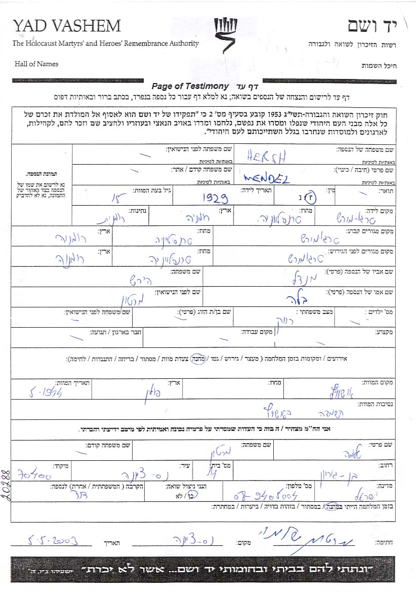 Yad Vashem - Pages of Testimony Names Memorial Collection