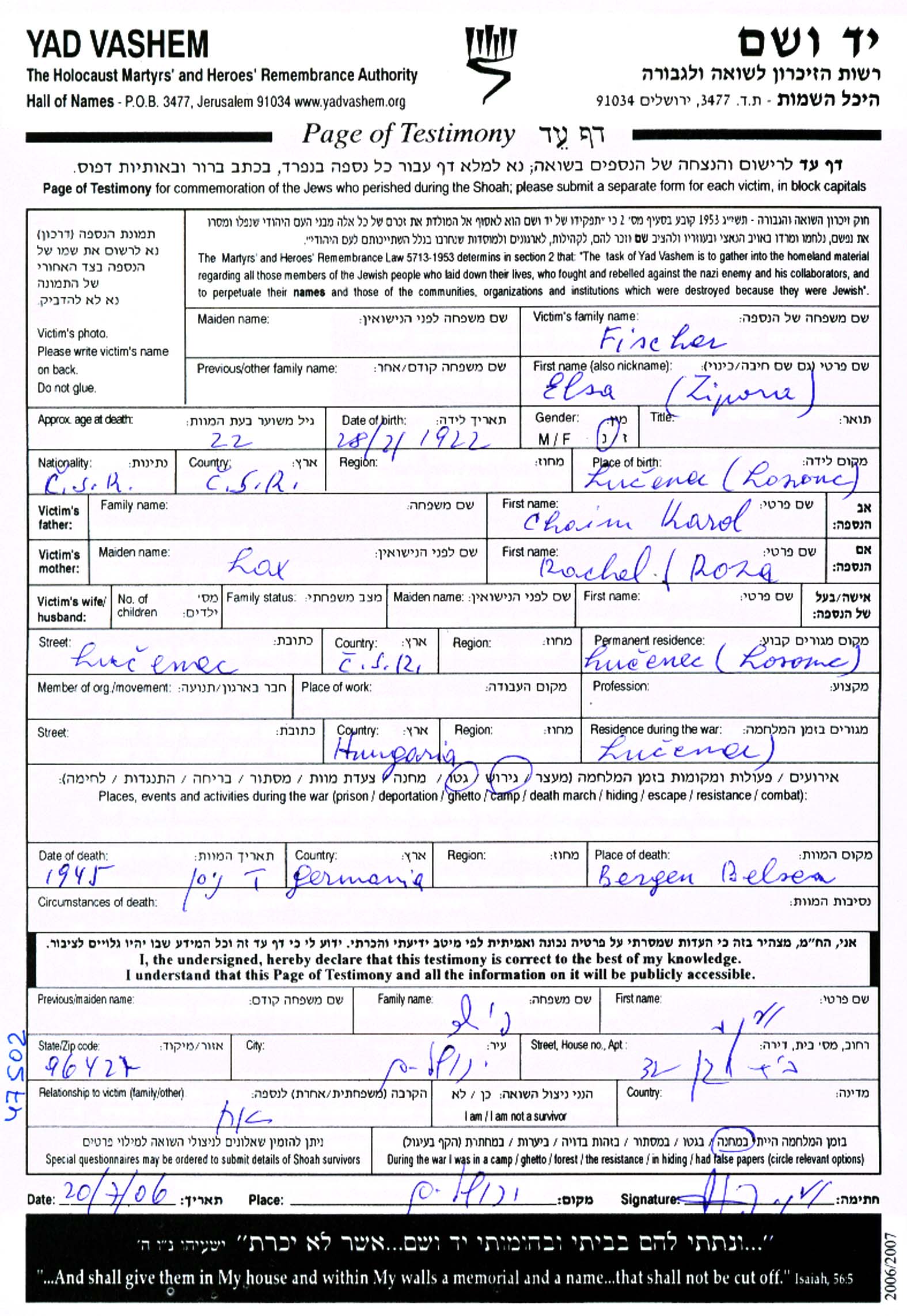 Yad Vashem - Pages of Testimony Names Memorial Collection