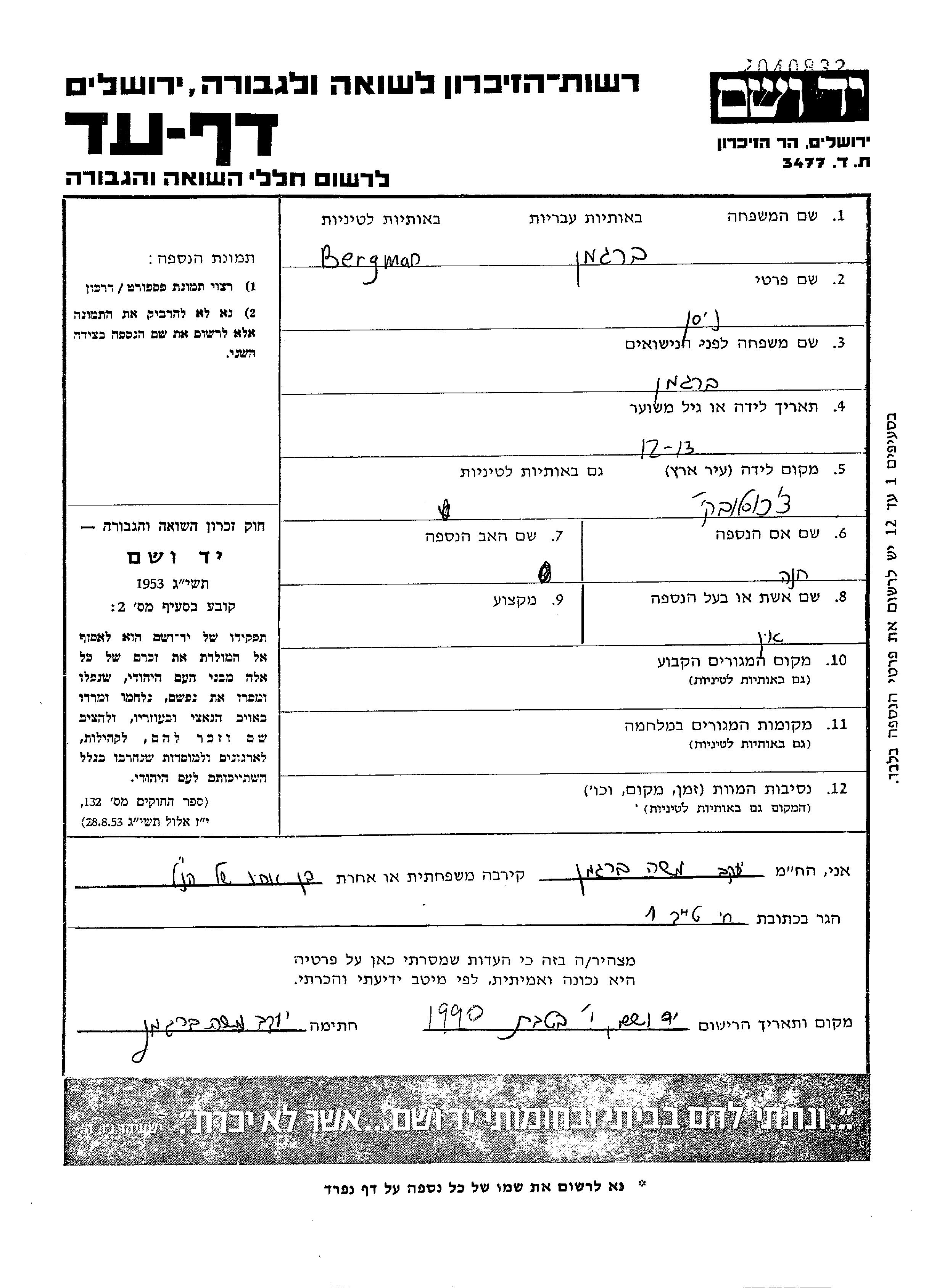 Yad Vashem - Pages of Testimony Names Memorial Collection