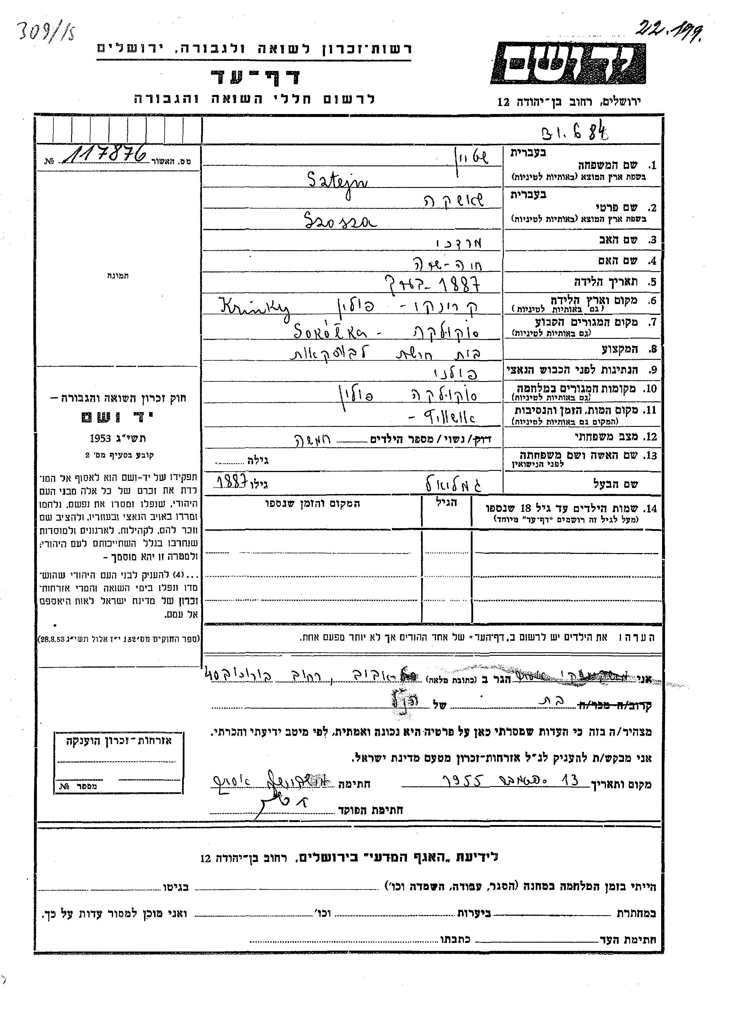 Yad Vashem - Pages of Testimony Names Memorial Collection