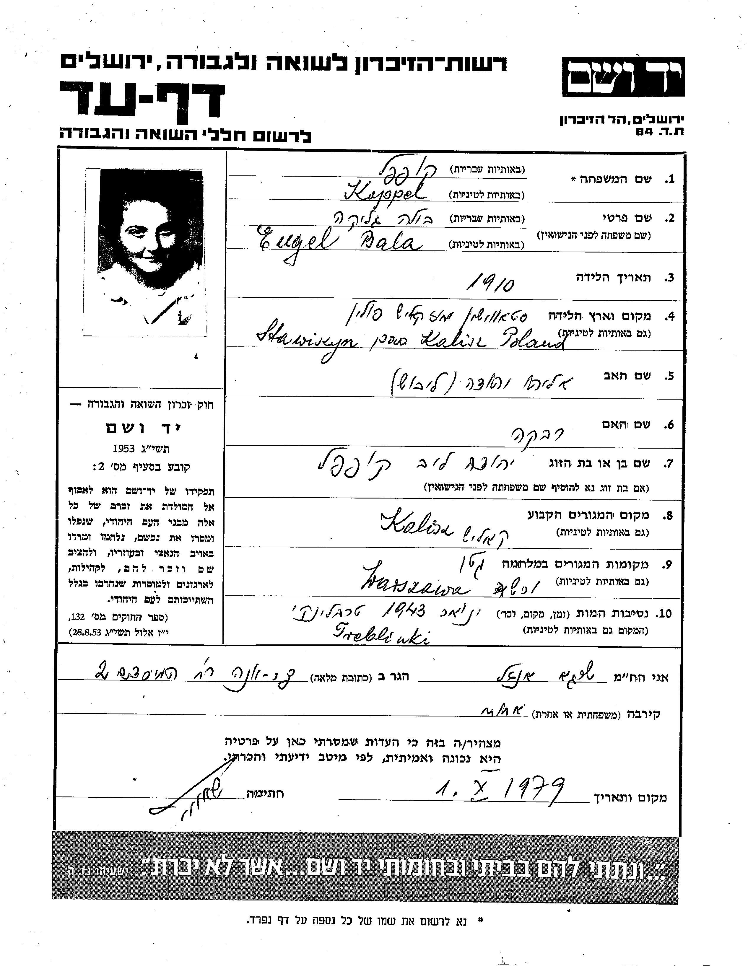 Yad Vashem - Pages of Testimony Names Memorial Collection