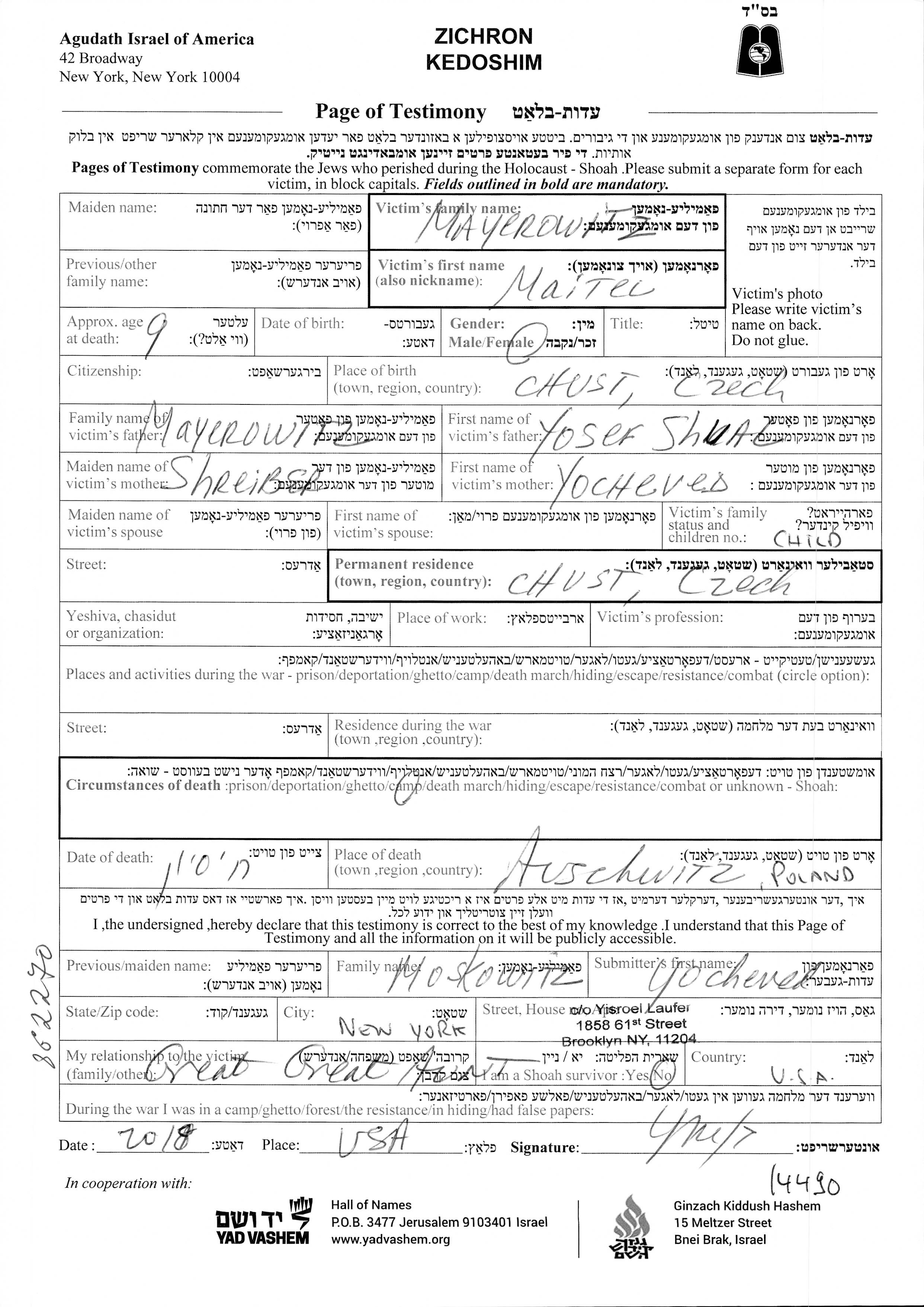 Yad Vashem - Pages of Testimony Names Memorial Collection