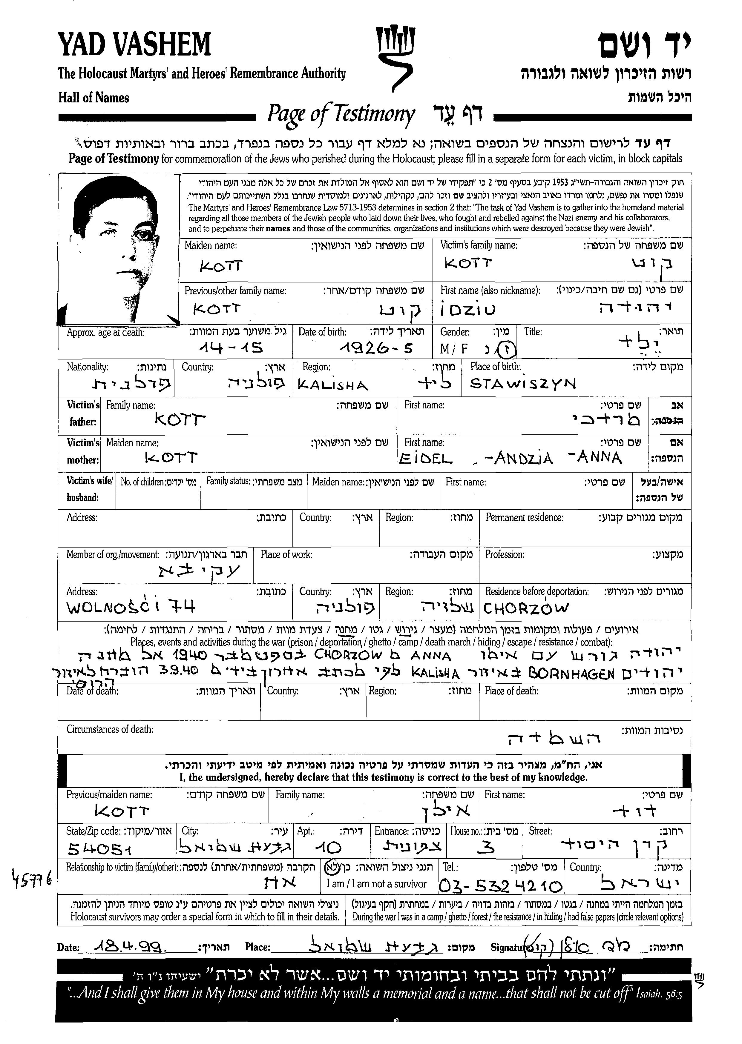 Idziu Kott est né à Stawiszyn, Pologne en 1925.