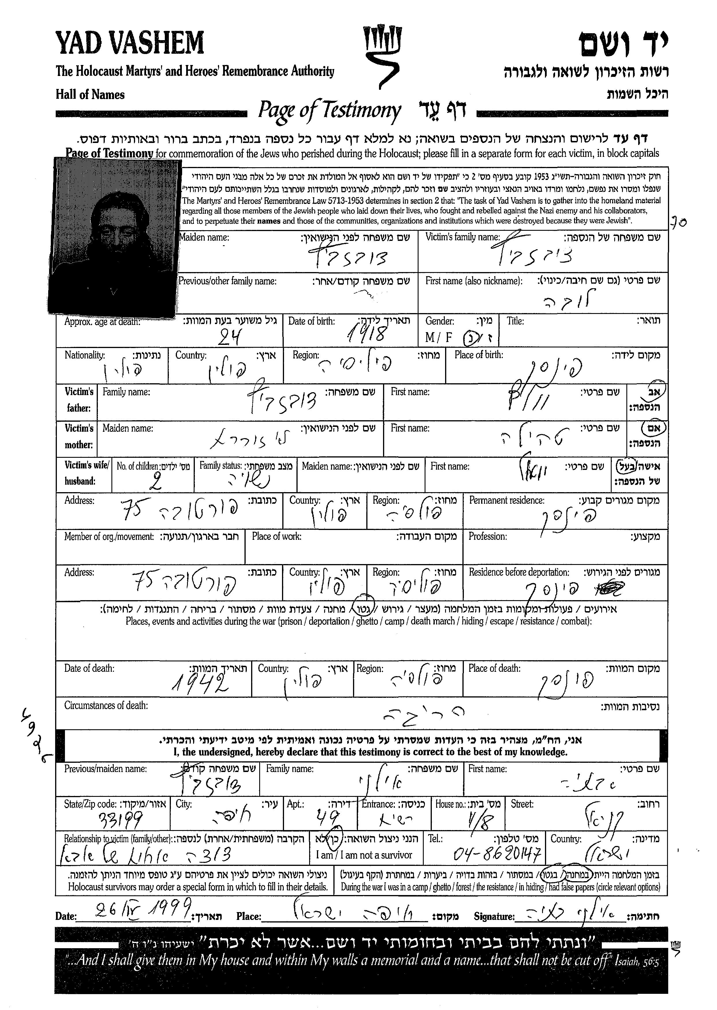 Yad Vashem - Pages of Testimony Names Memorial Collection