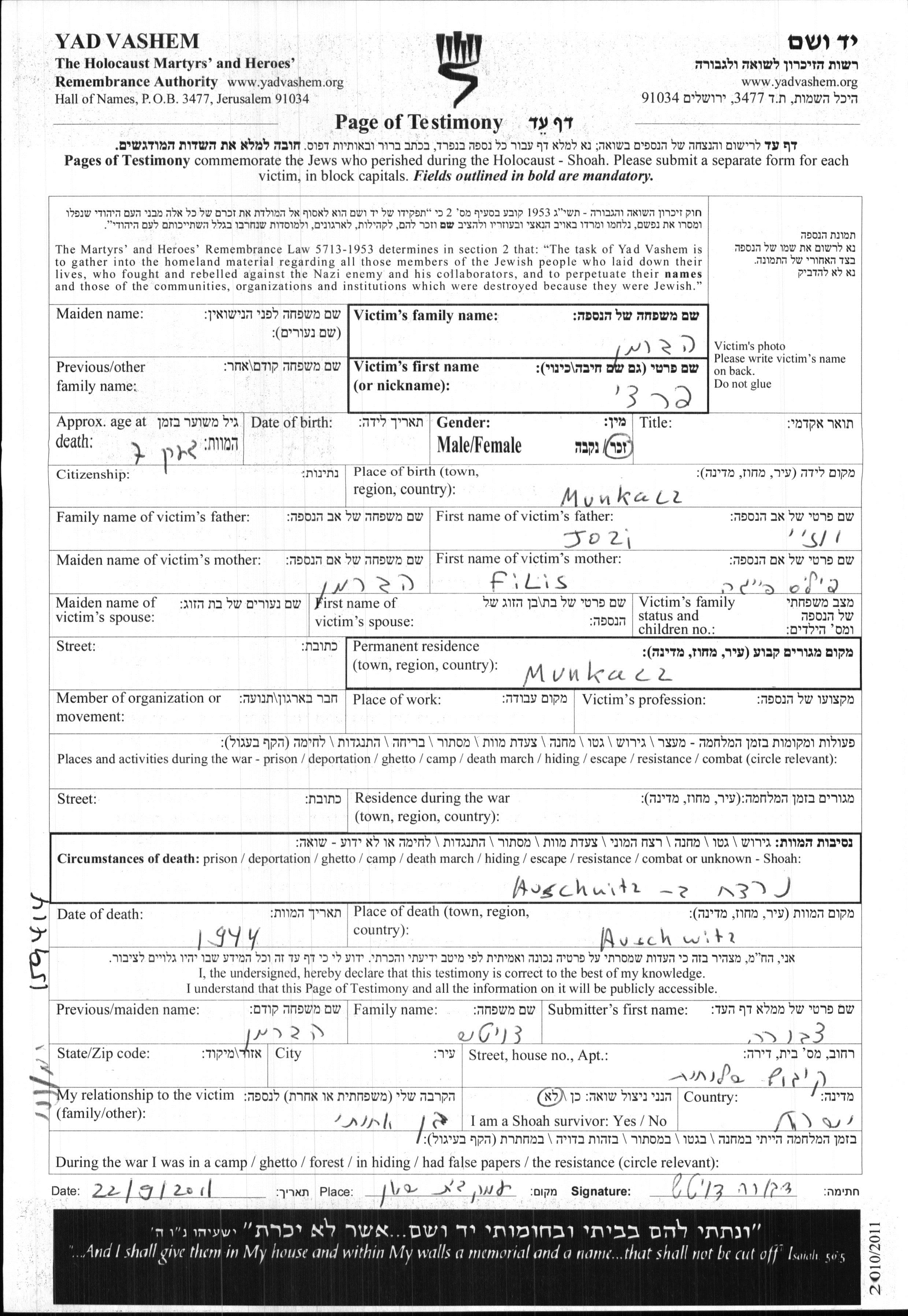 Yad Vashem - Pages of Testimony Names Memorial Collection