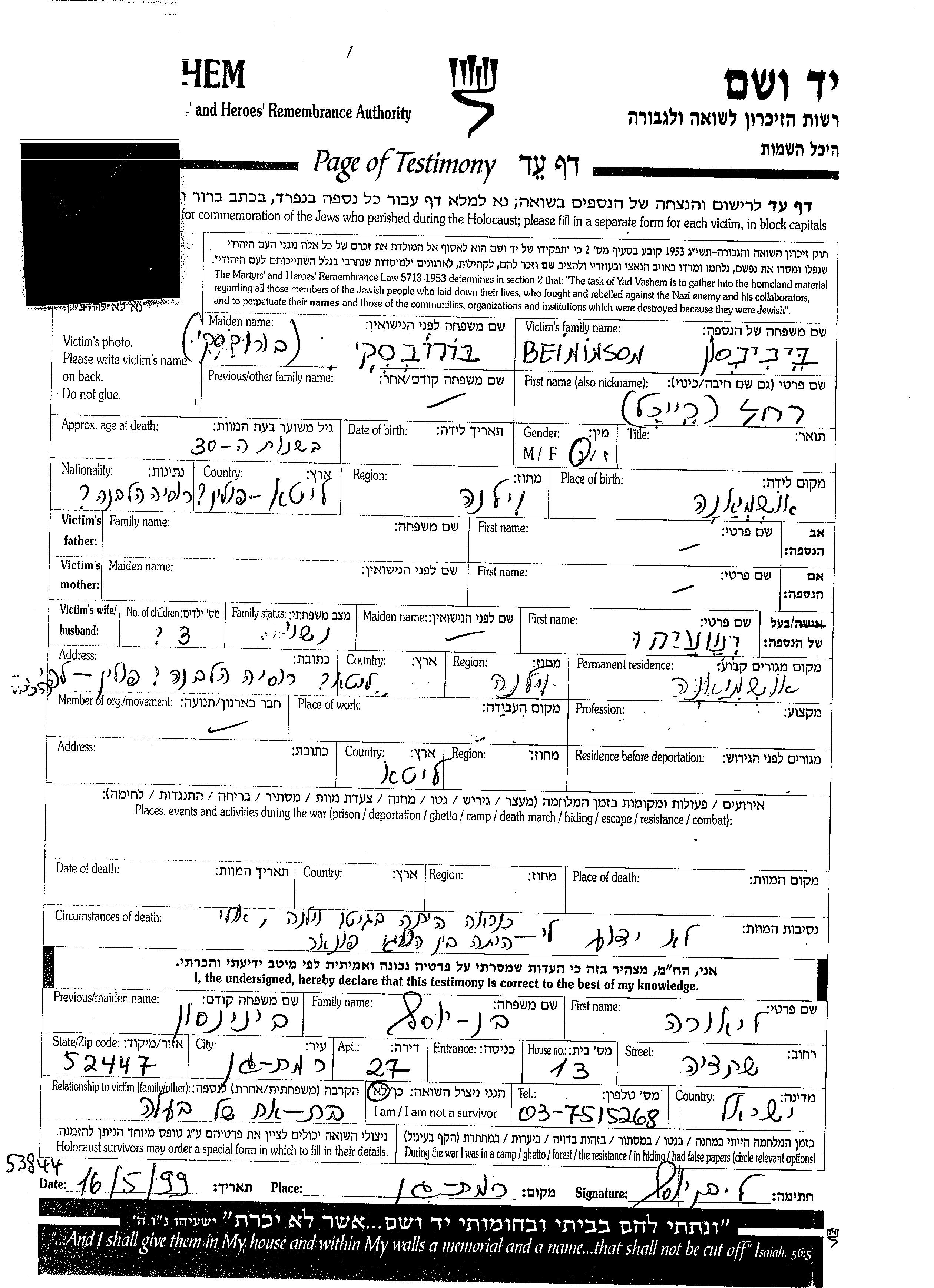 Yad Vashem - Pages of Testimony Names Memorial Collection