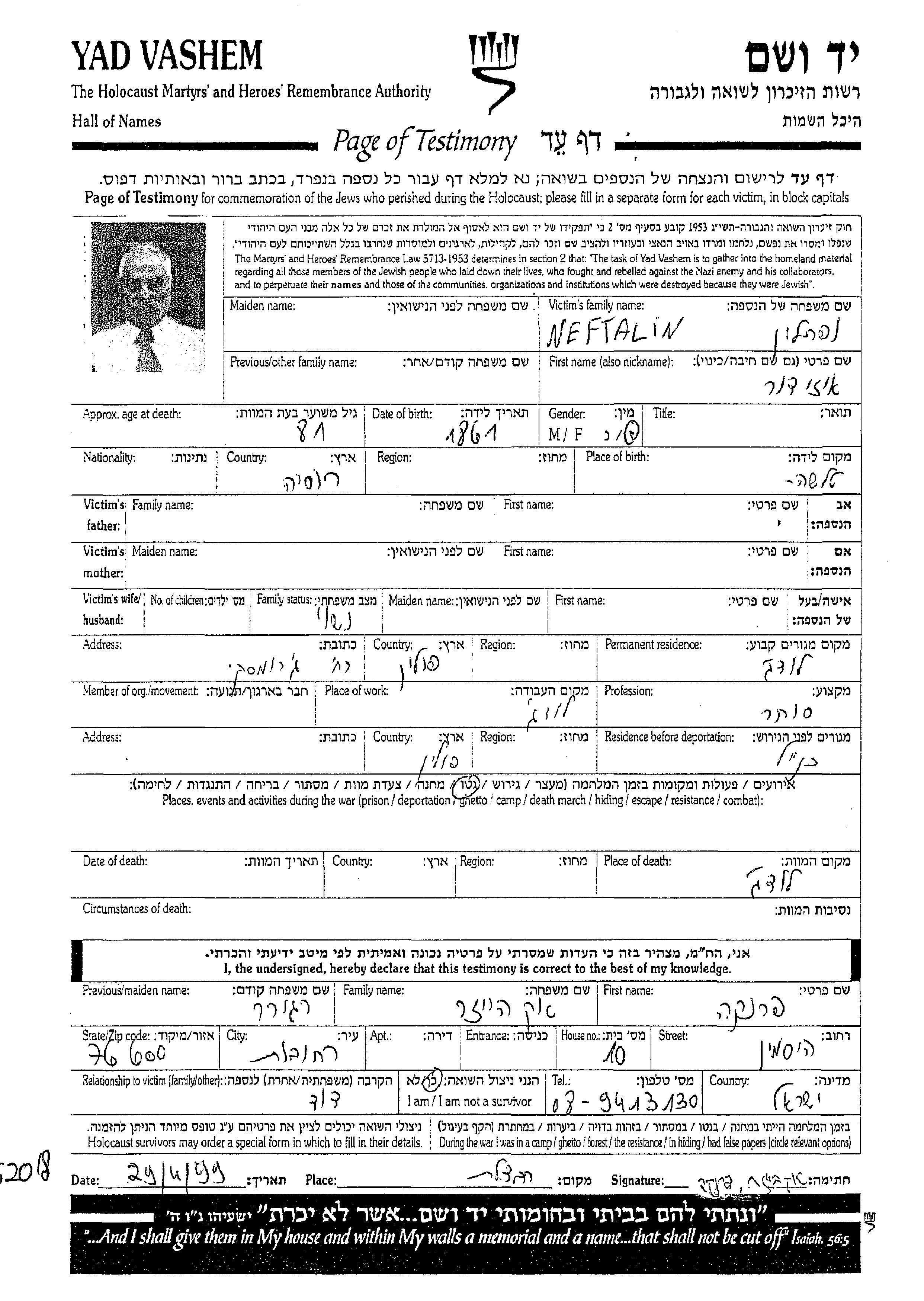 Yad Vashem - Pages of Testimony Names Memorial Collection