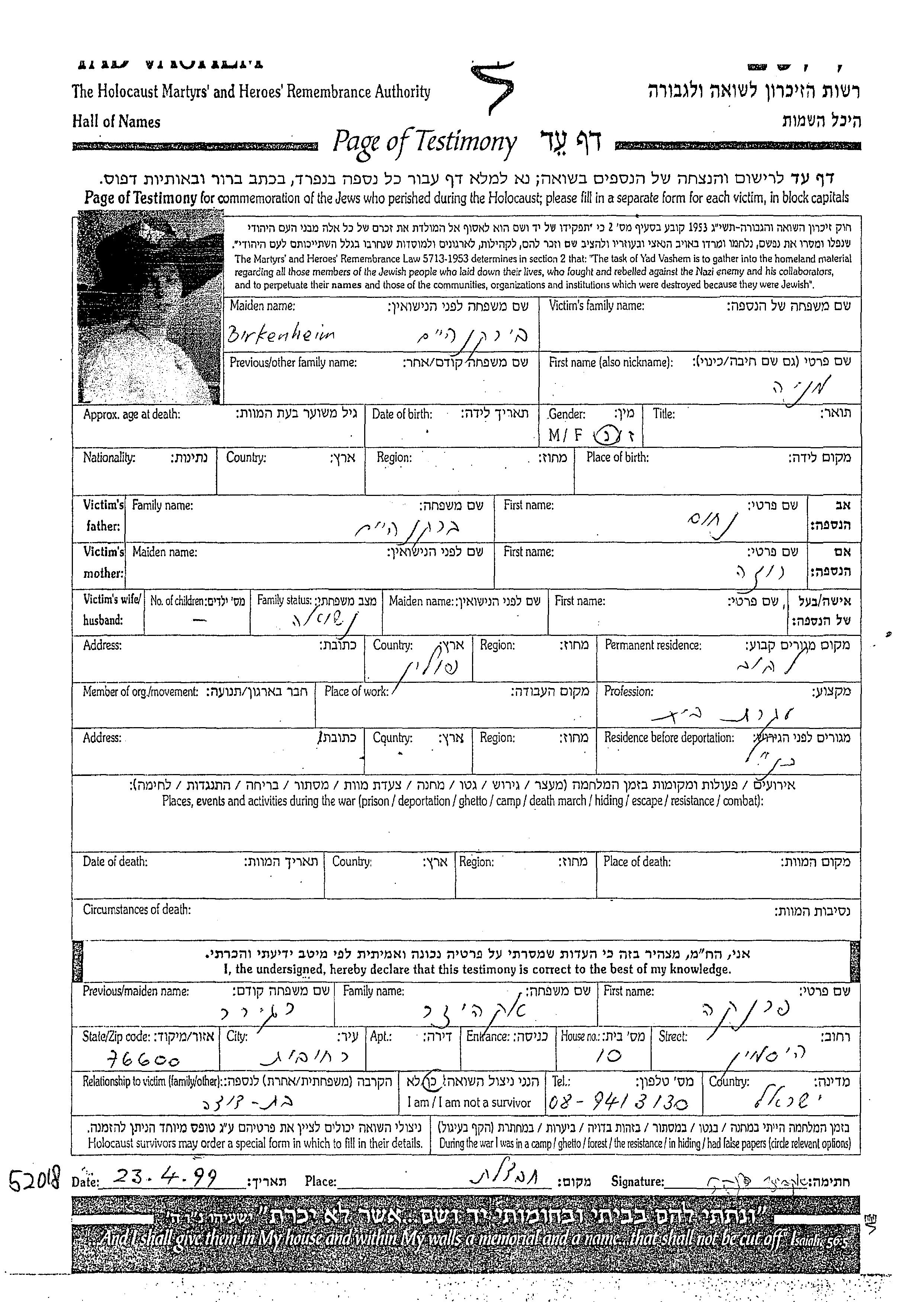 Yad Vashem - Pages of Testimony Names Memorial Collection