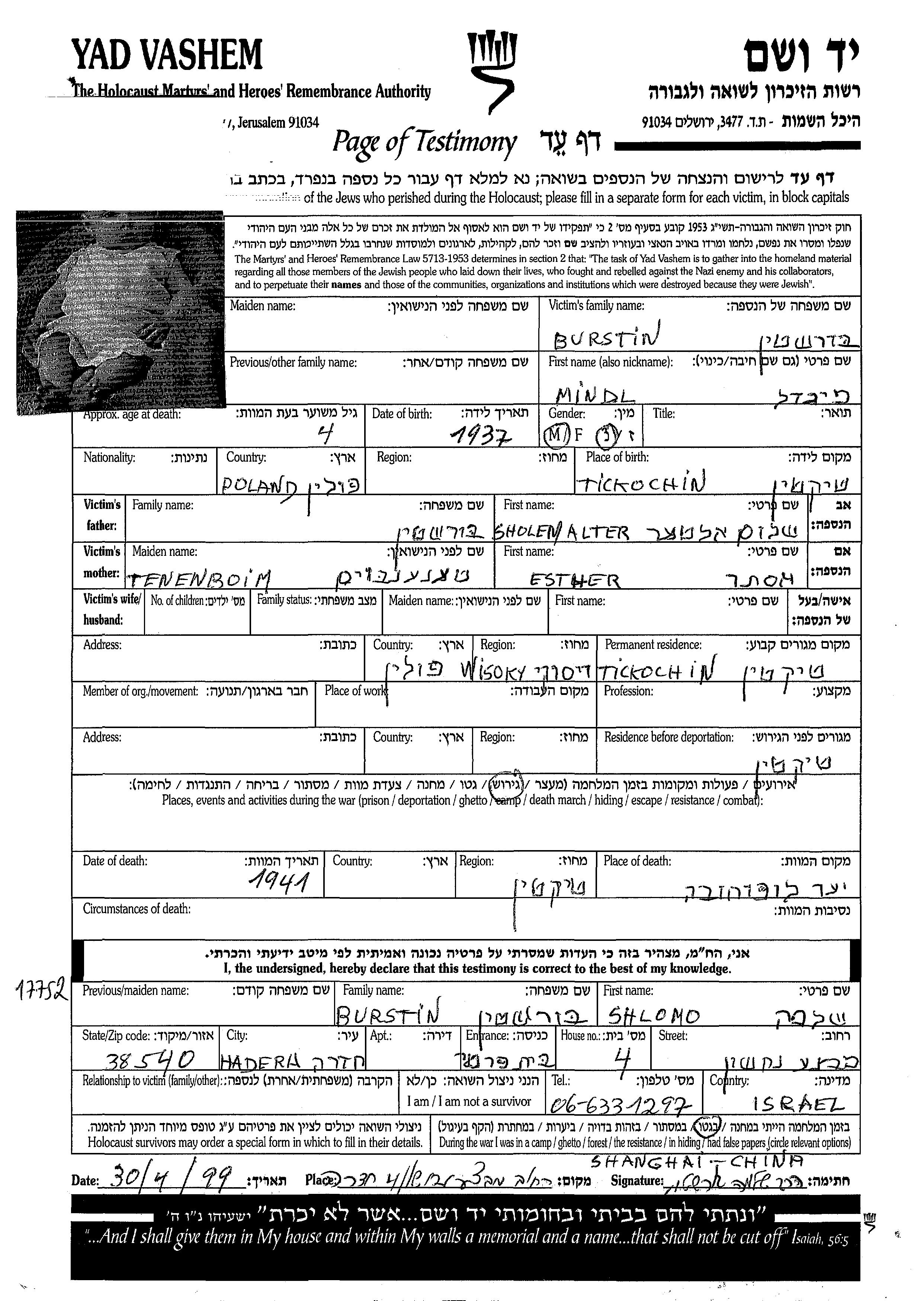Yad Vashem - Pages of Testimony Names Memorial Collection