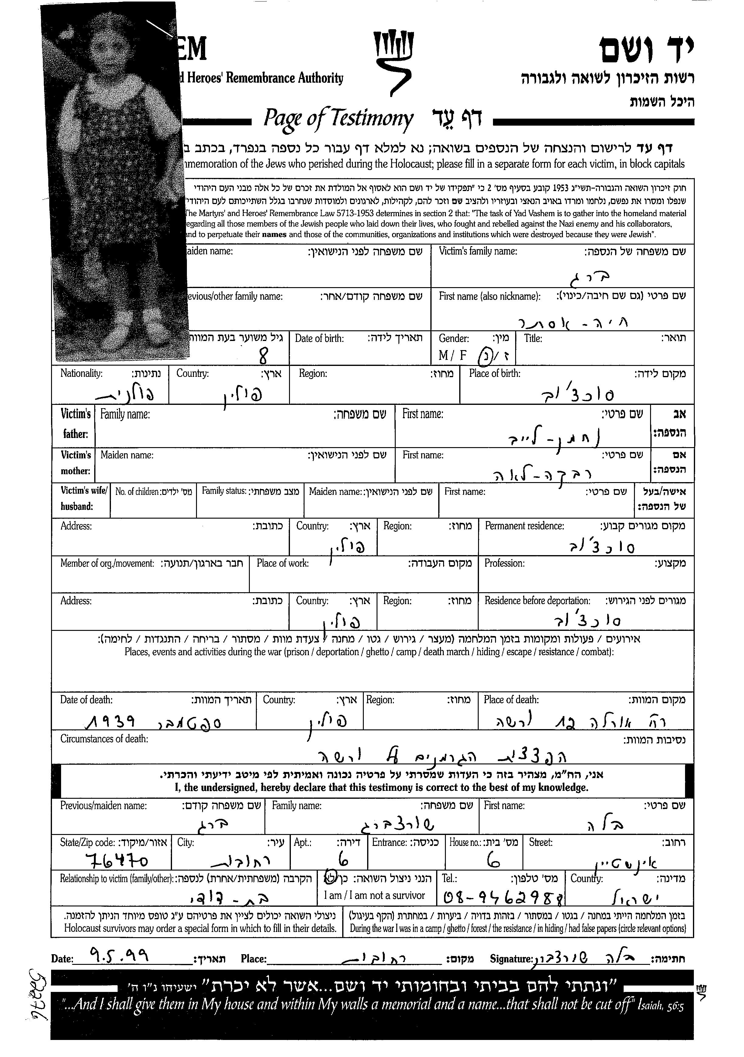 Yad Vashem - Pages of Testimony Names Memorial Collection