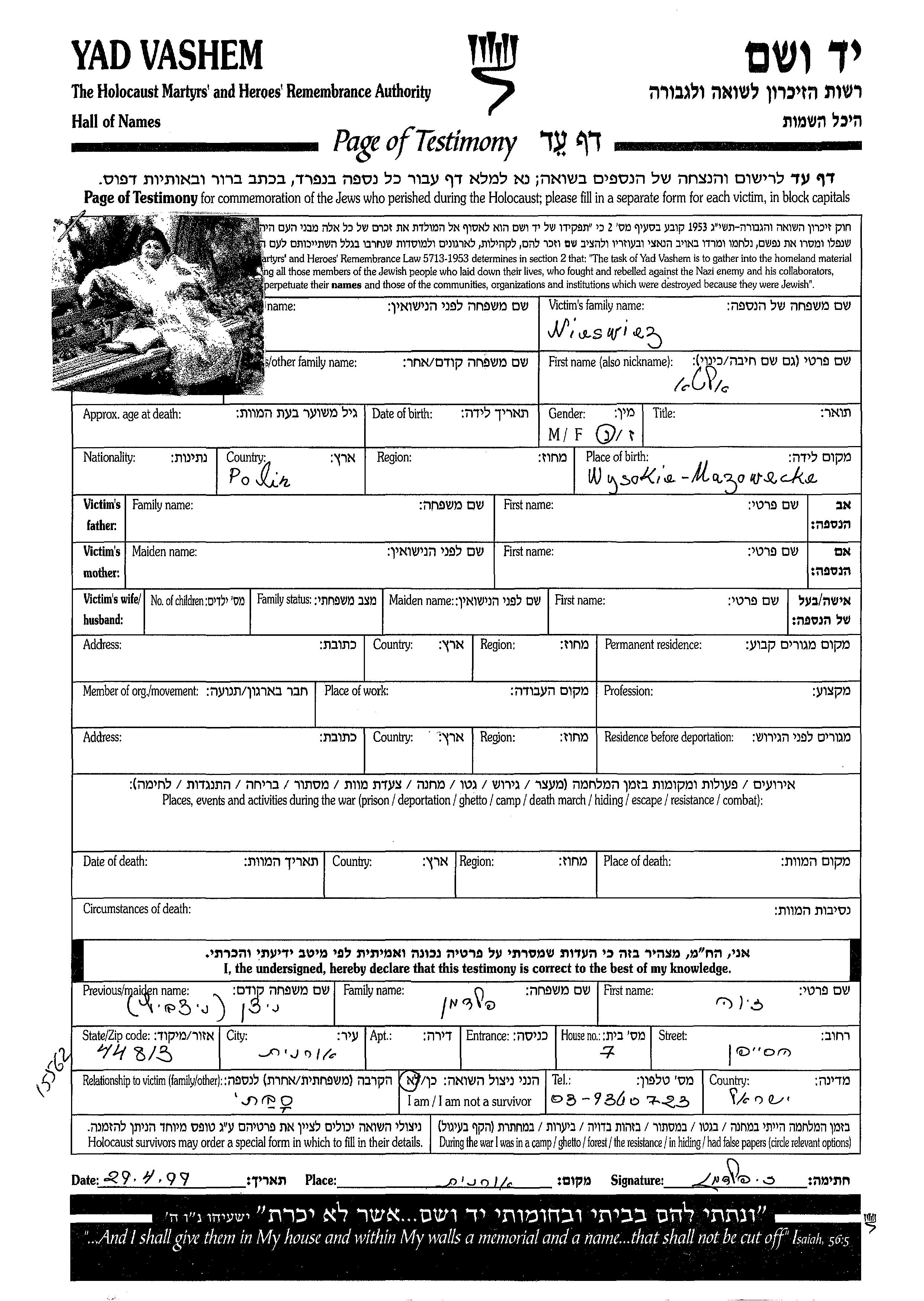 Recherche par date de la mort pendant la période de la Shoah: 1933-1945. Sélectionnez 'Exact'; dans la liste pour rechercher l'année exacte, ou sélectionner '+/- 2 ans'; ou '+/- 5 ans