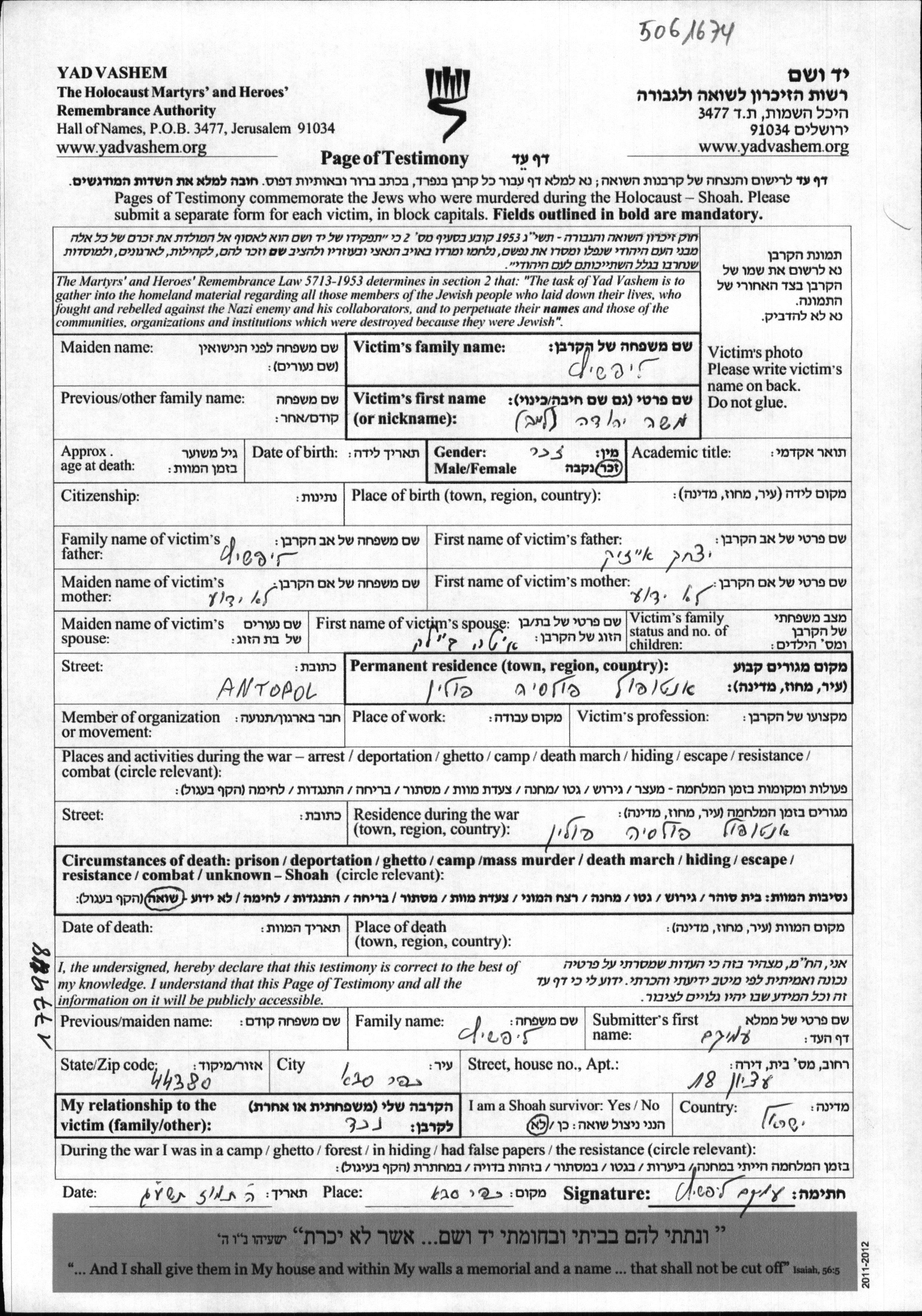Yad Vashem - Pages of Testimony Names Memorial Collection