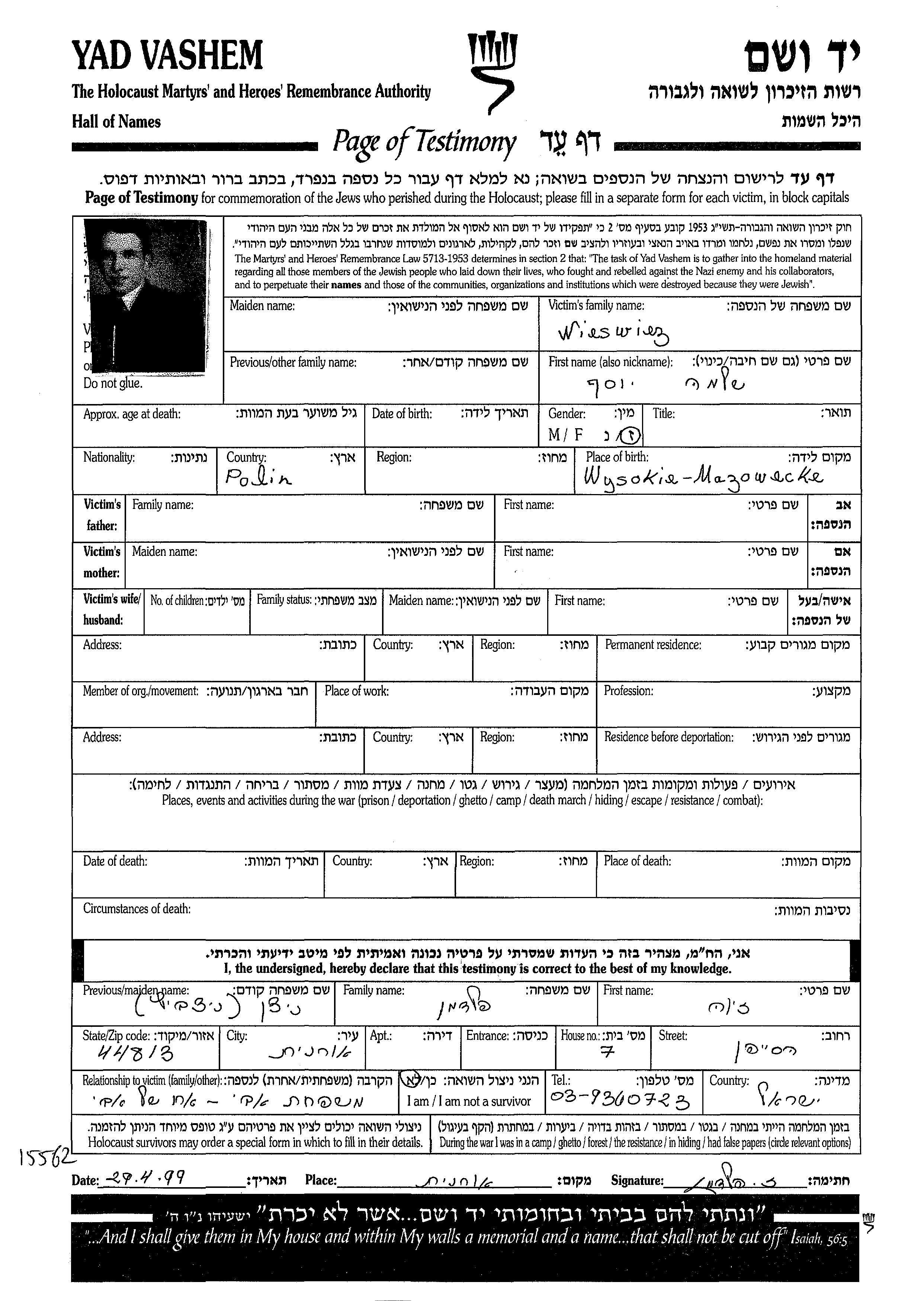 Recherche par date de la mort pendant la période de la Shoah: 1933-1945. Sélectionnez 'Exact'; dans la liste pour rechercher l'année exacte, ou sélectionner '+/- 2 ans'; ou '+/- 5 ans
