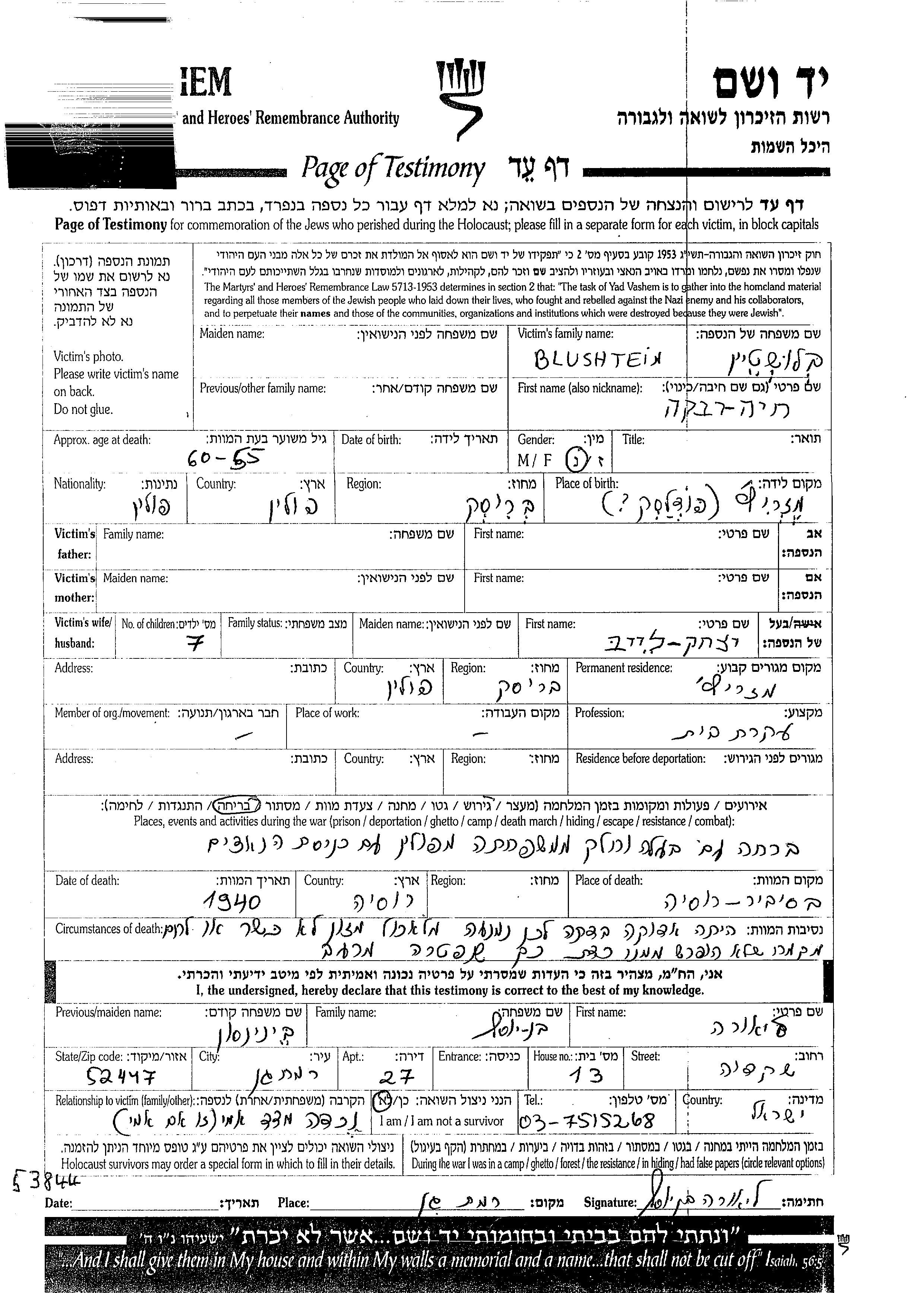 Recherche par nom du dépositeur de la Feuille de témoignage. Cette recherché indique aussi les noms de jeunes filles.