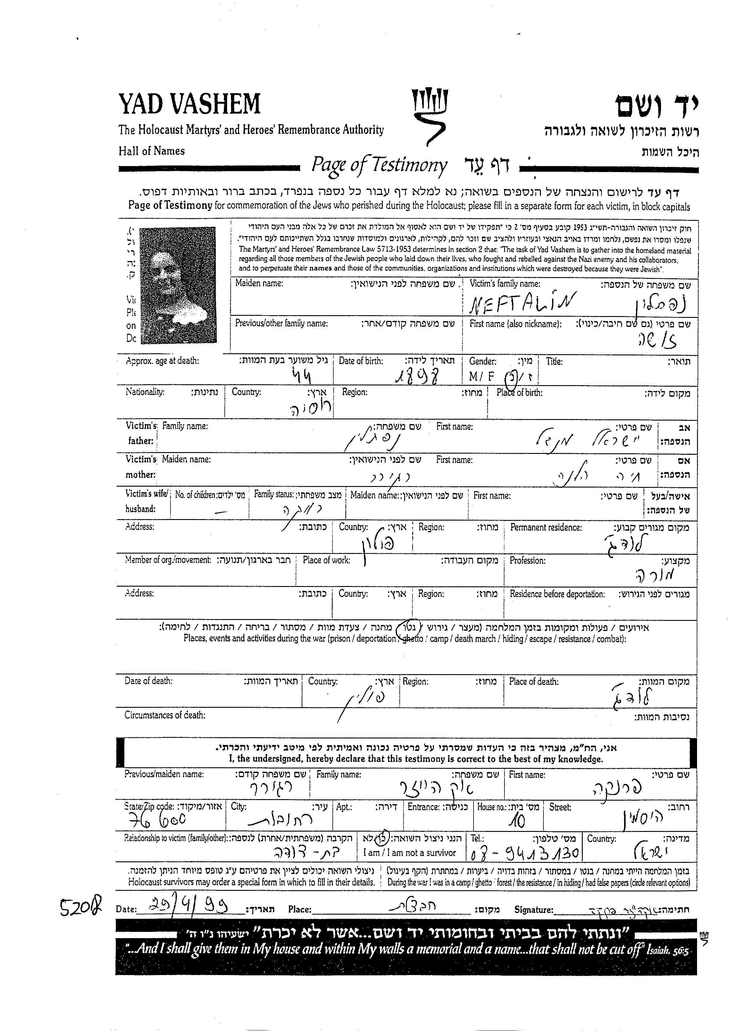 Yad Vashem - Pages of Testimony Names Memorial Collection