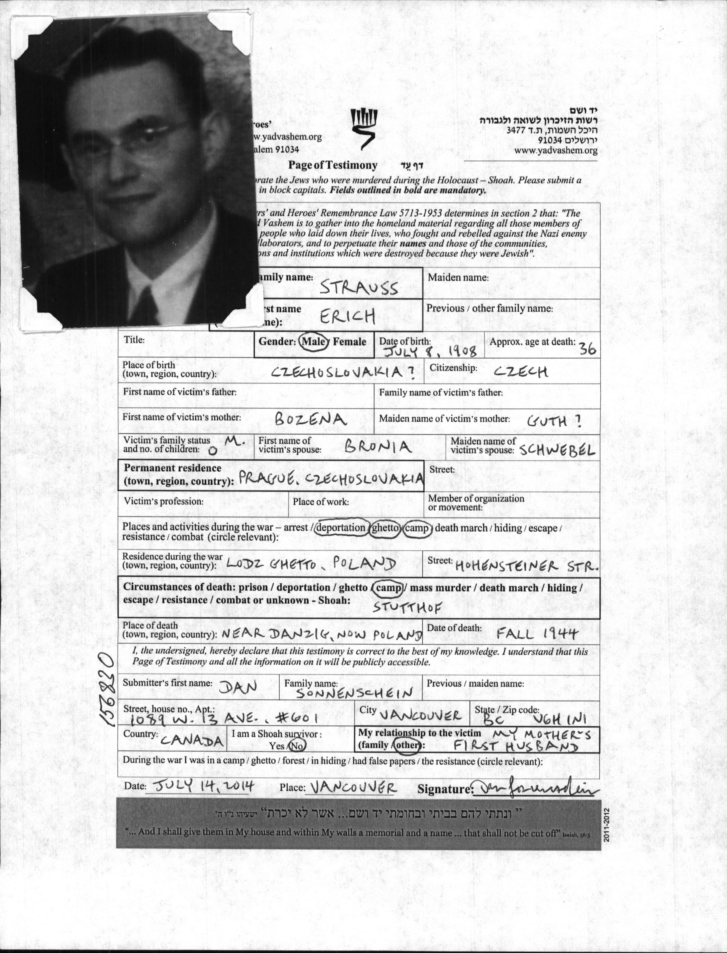 Erich Strauss est né à Tchécoslovaquie en 1908. Avant la seconde guerre mondiale il vivait à Praha, Tchécoslovaquie.