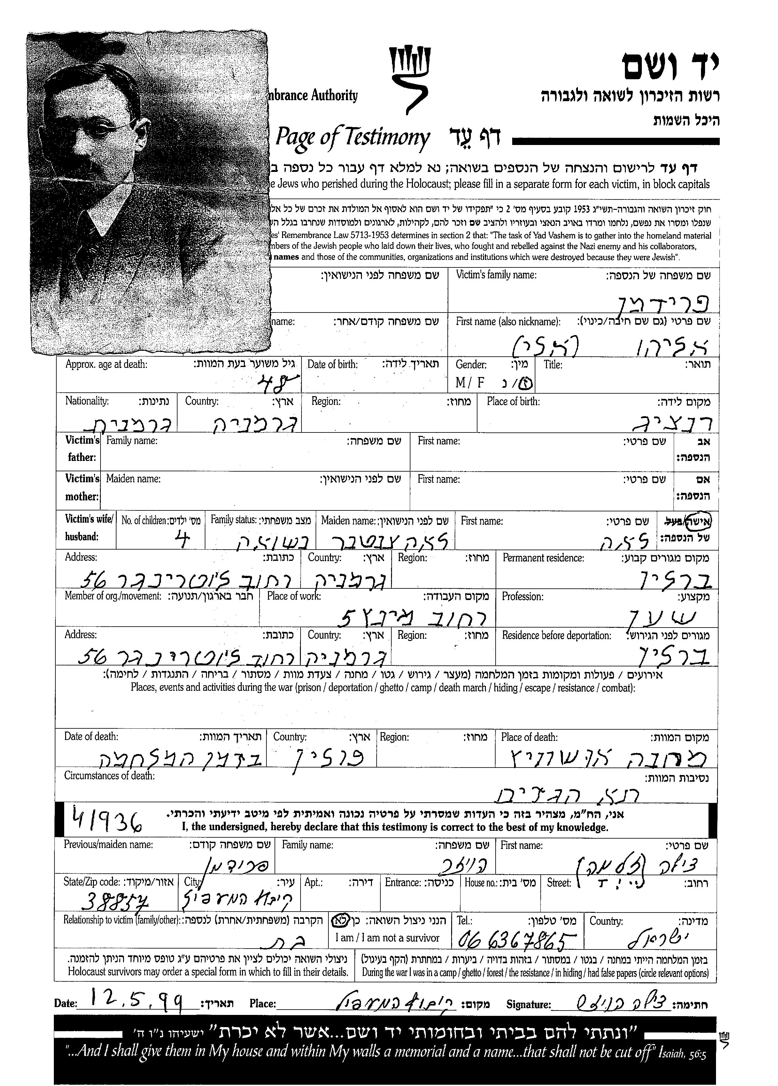 Yad Vashem - Pages of Testimony Names Memorial Collection