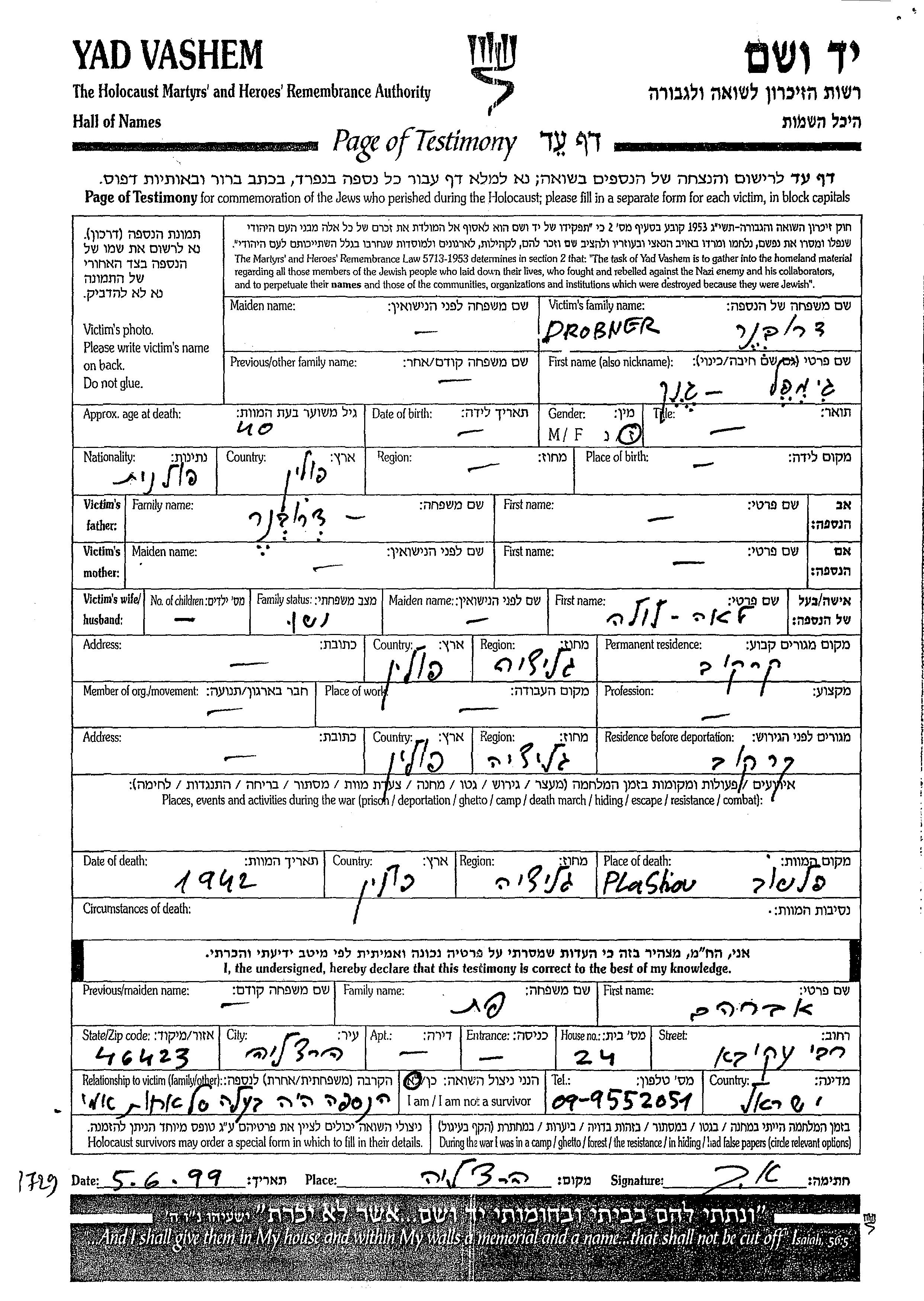 Yad Vashem - Pages of Testimony Names Memorial Collection