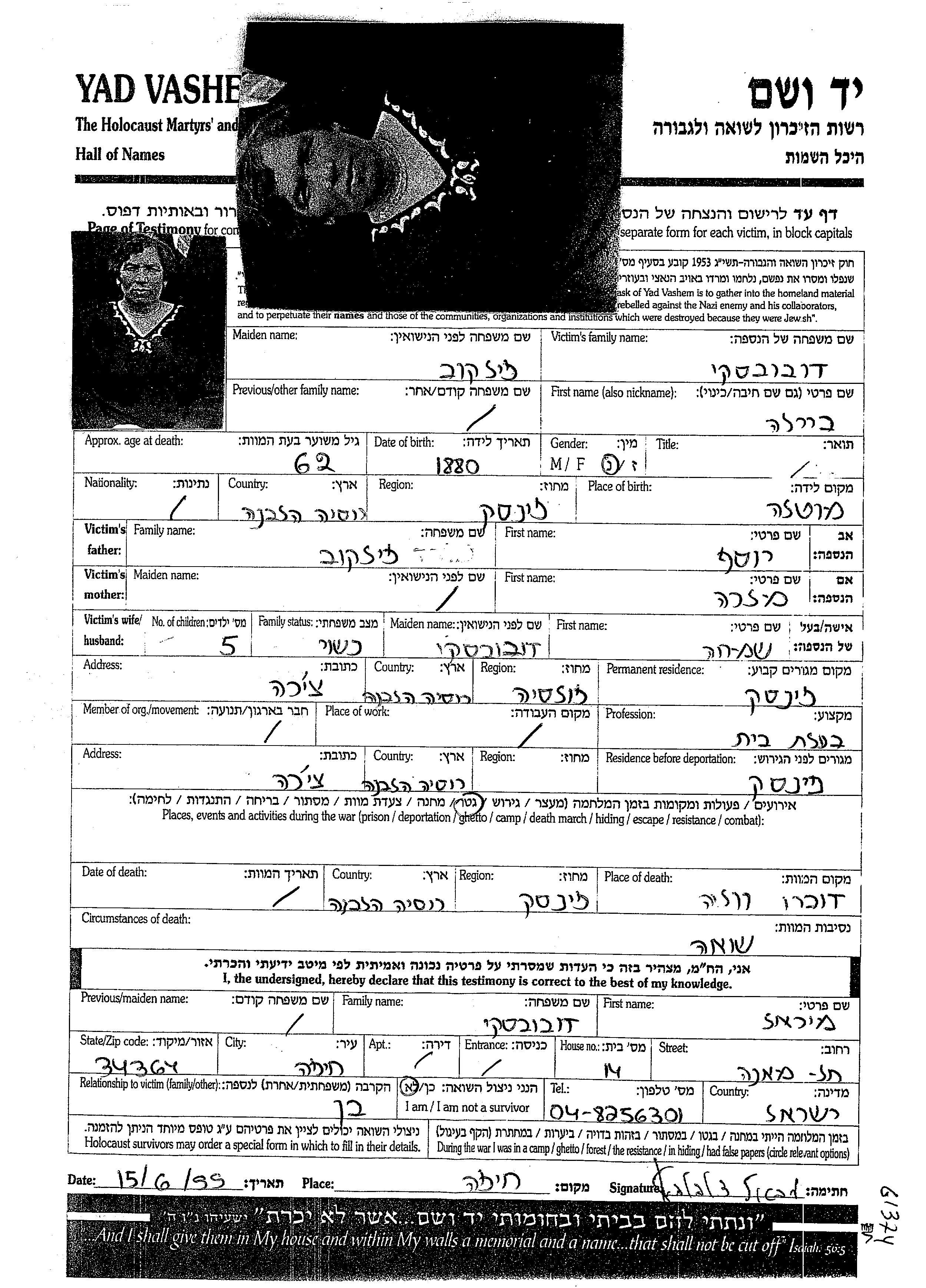 Yad Vashem - Pages of Testimony Names Memorial Collection