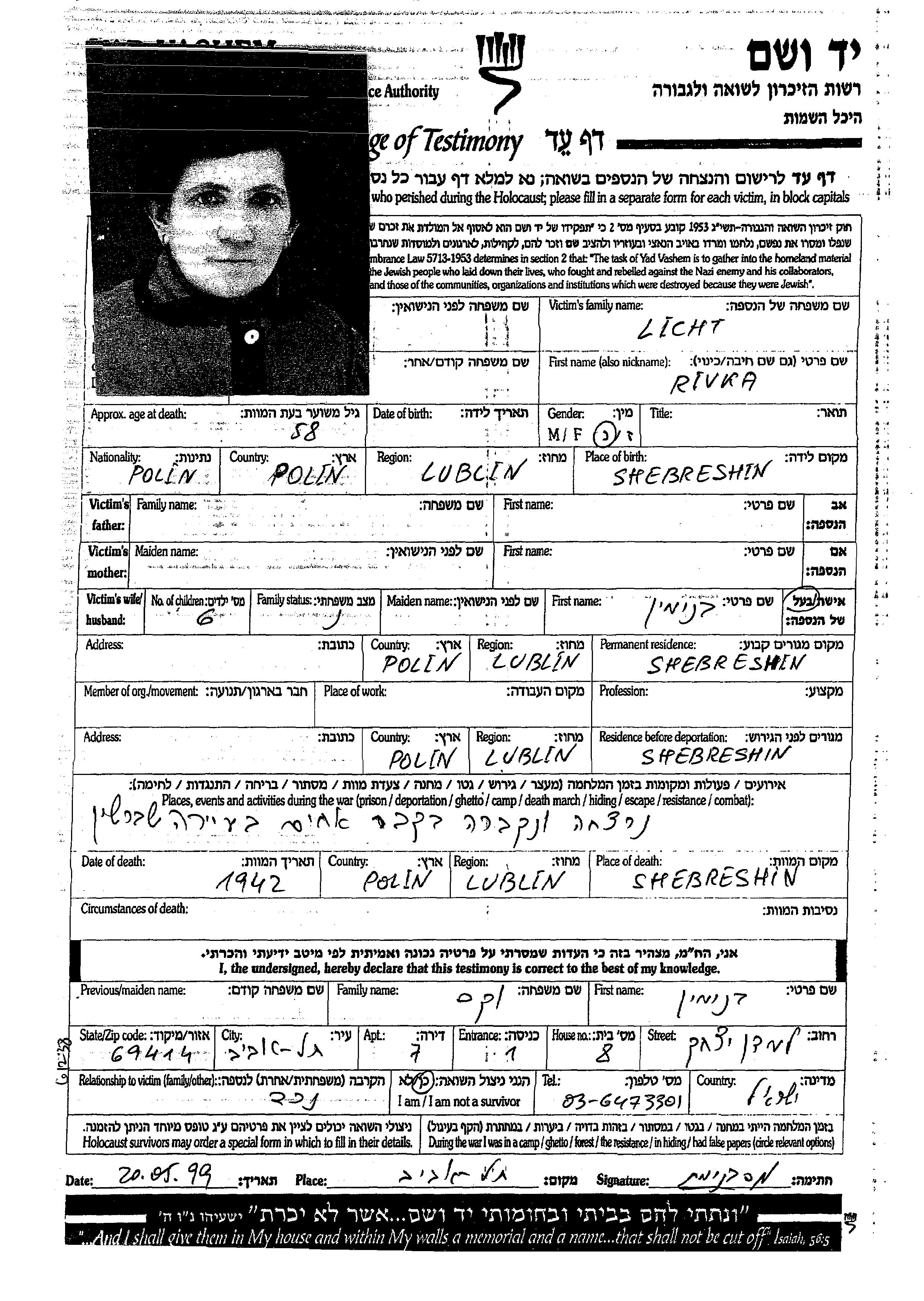 Yad Vashem - Pages of Testimony Names Memorial Collection