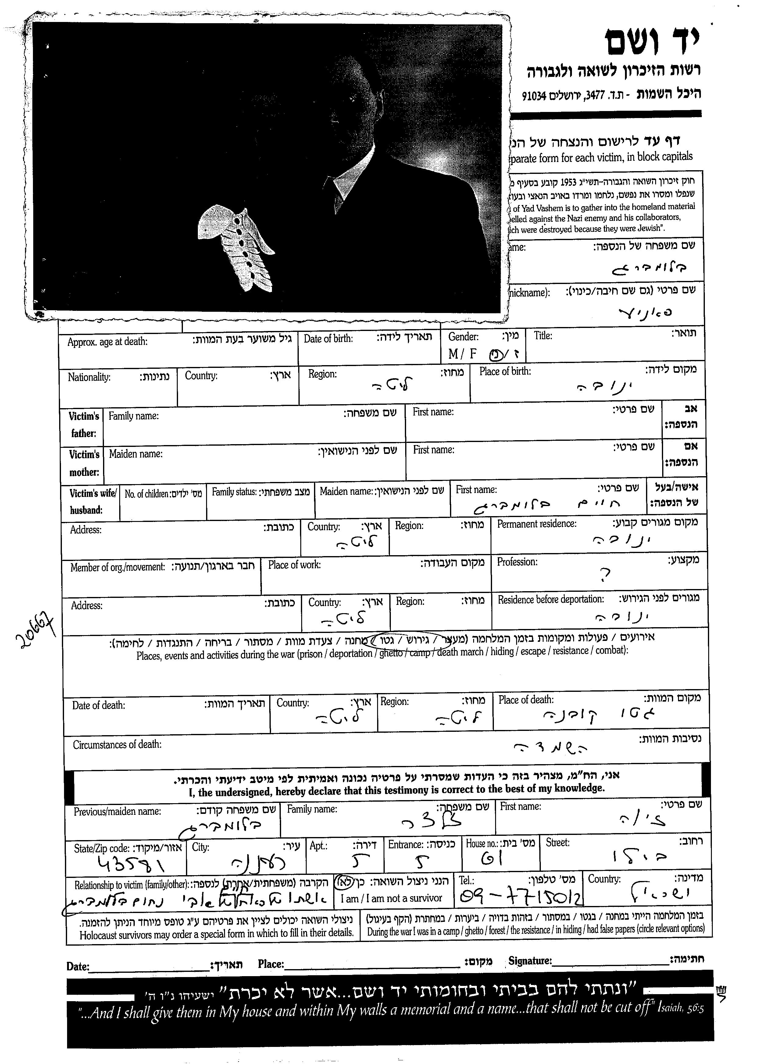 Yad Vashem - Pages of Testimony Names Memorial Collection