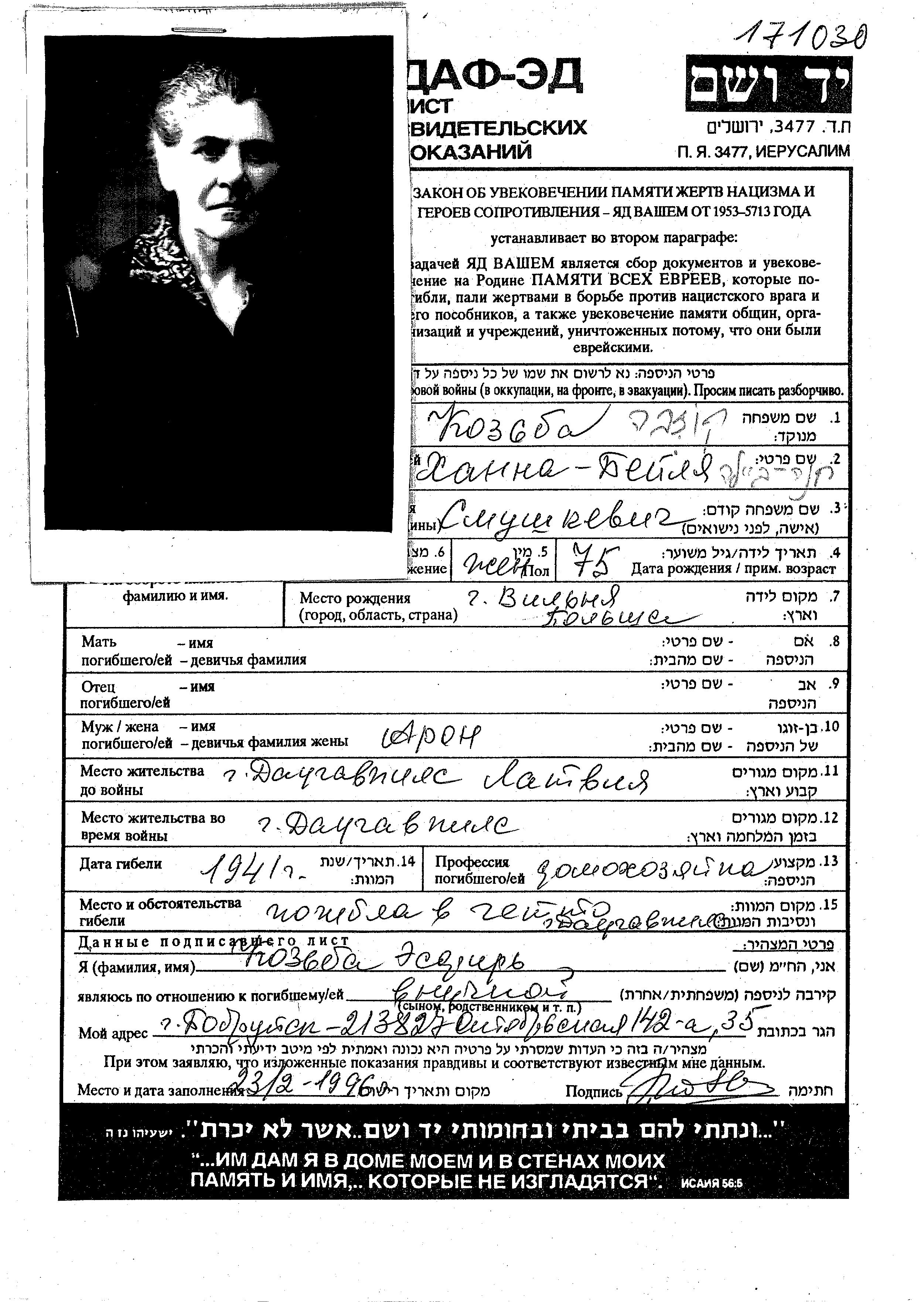 Yad Vashem - Pages of Testimony Names Memorial Collection