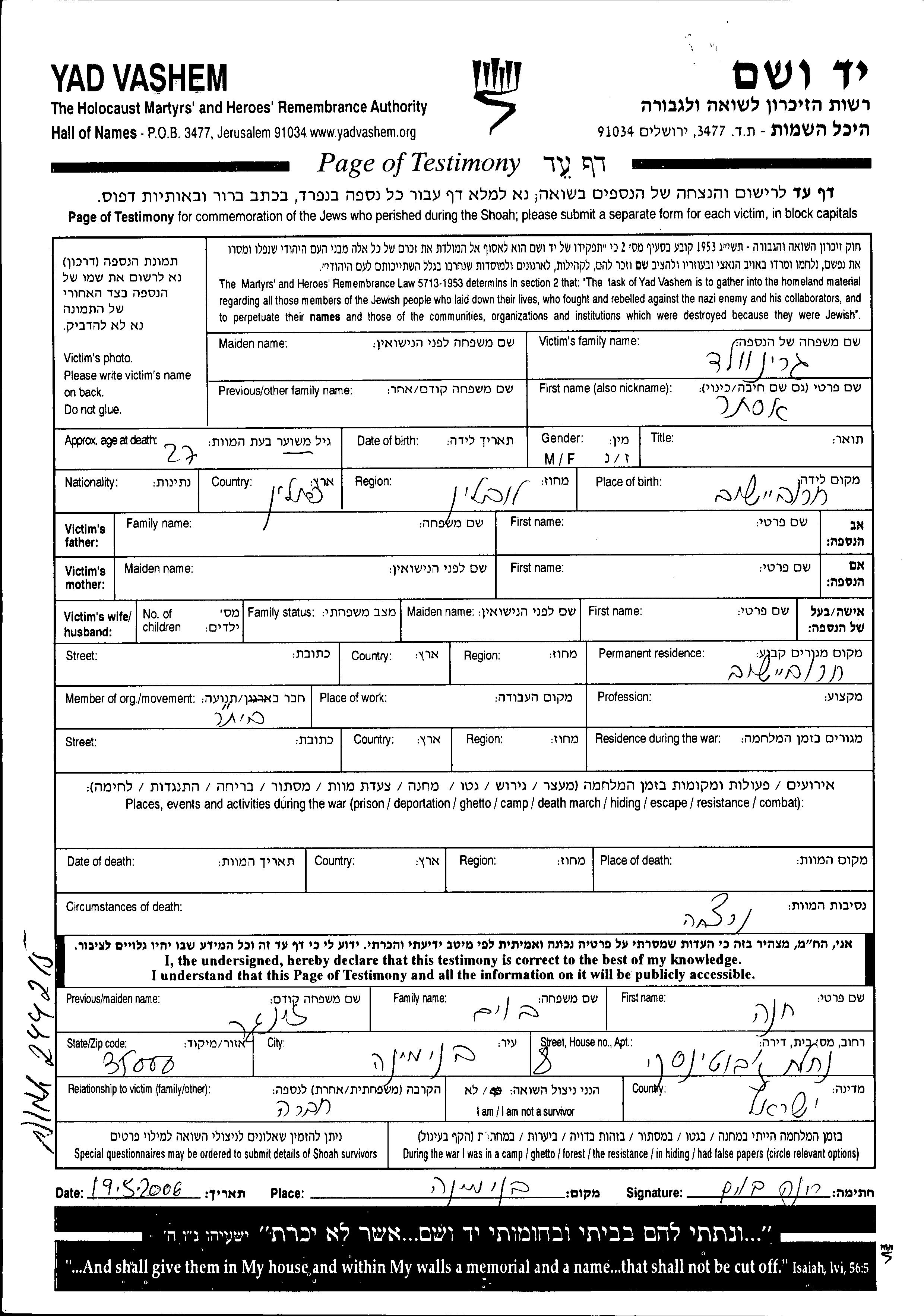 Yad Vashem - Pages of Testimony Names Memorial Collection