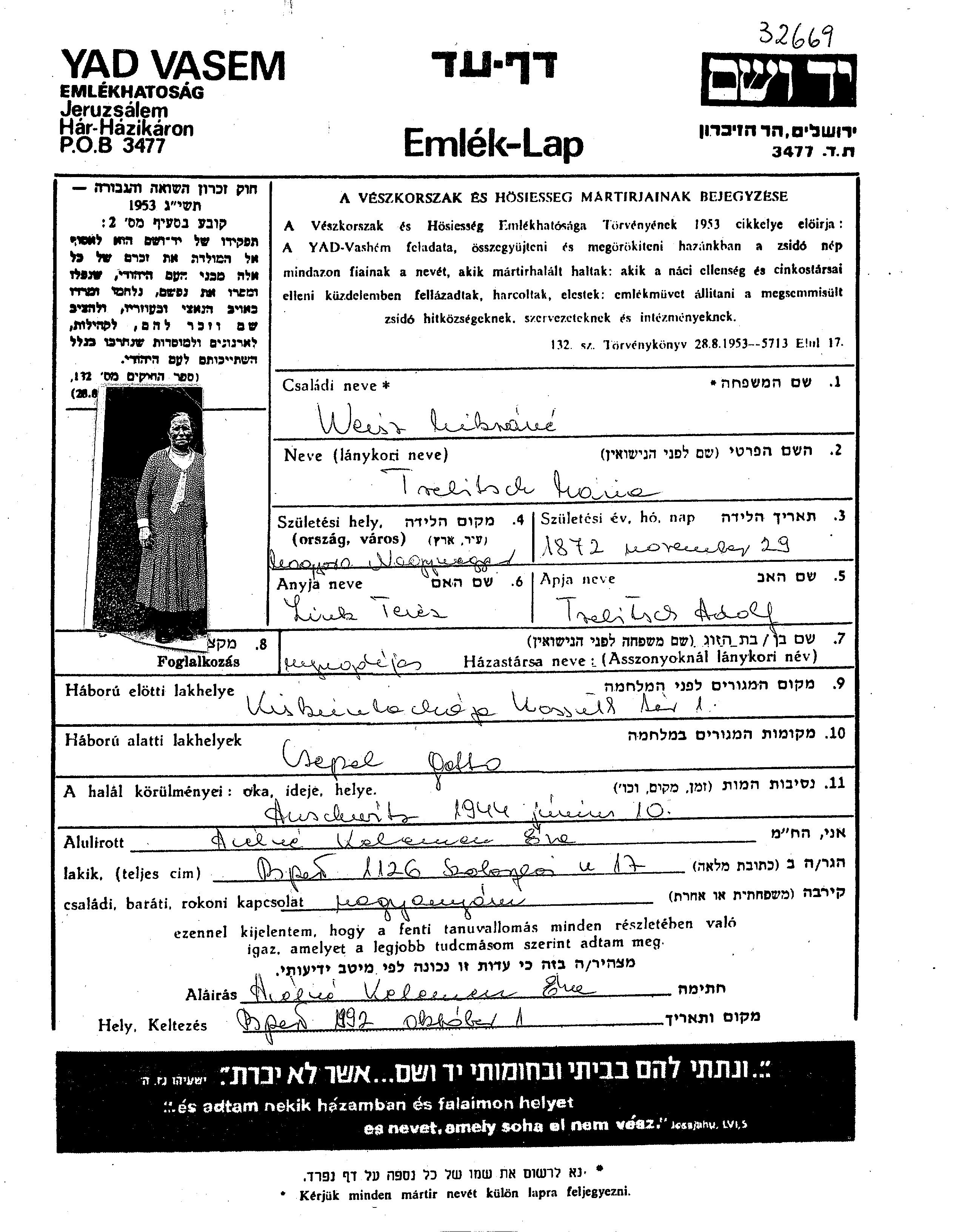 Yad Vashem - Pages of Testimony Names Memorial Collection