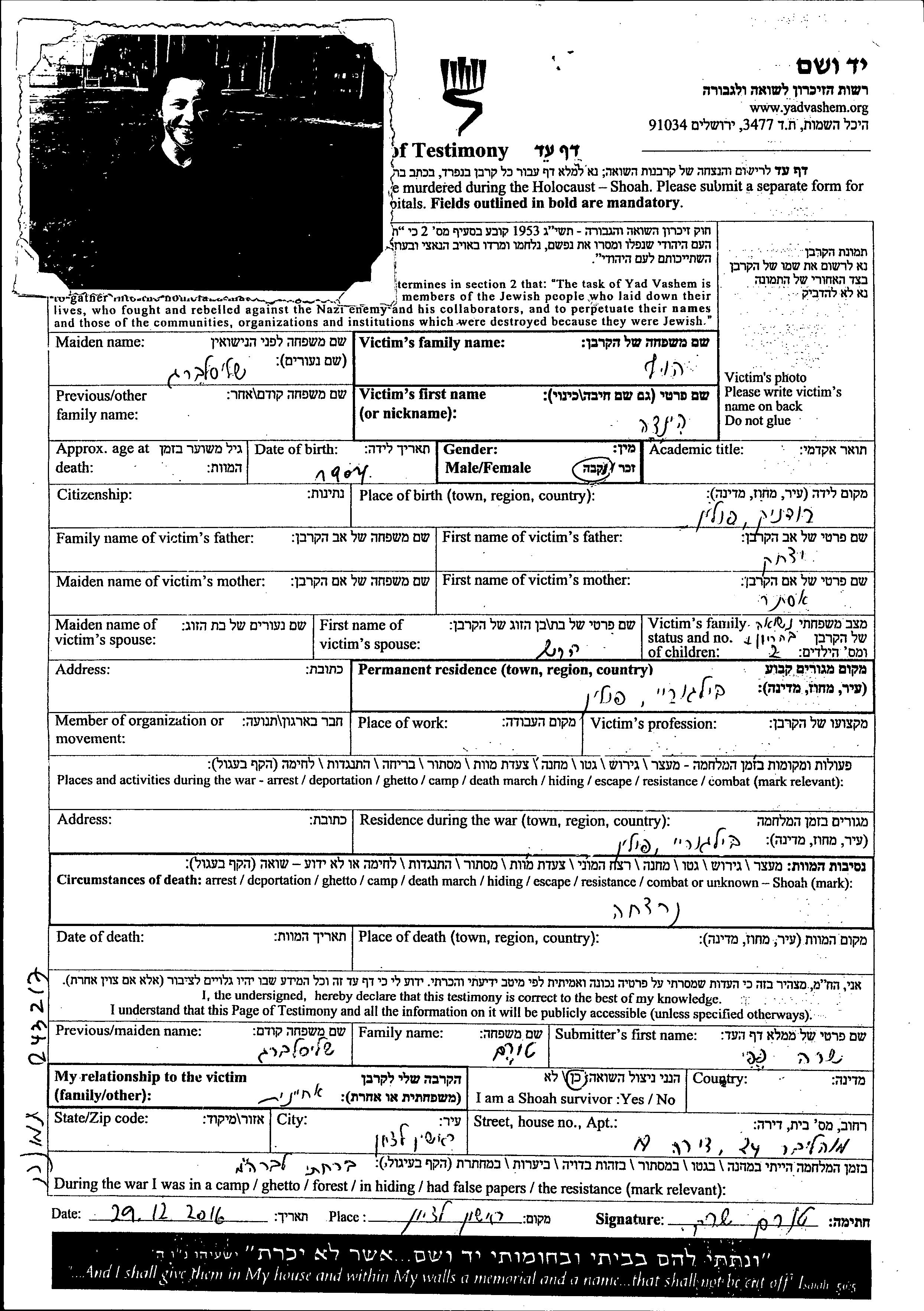 Yad Vashem - Pages of Testimony Names Memorial Collection