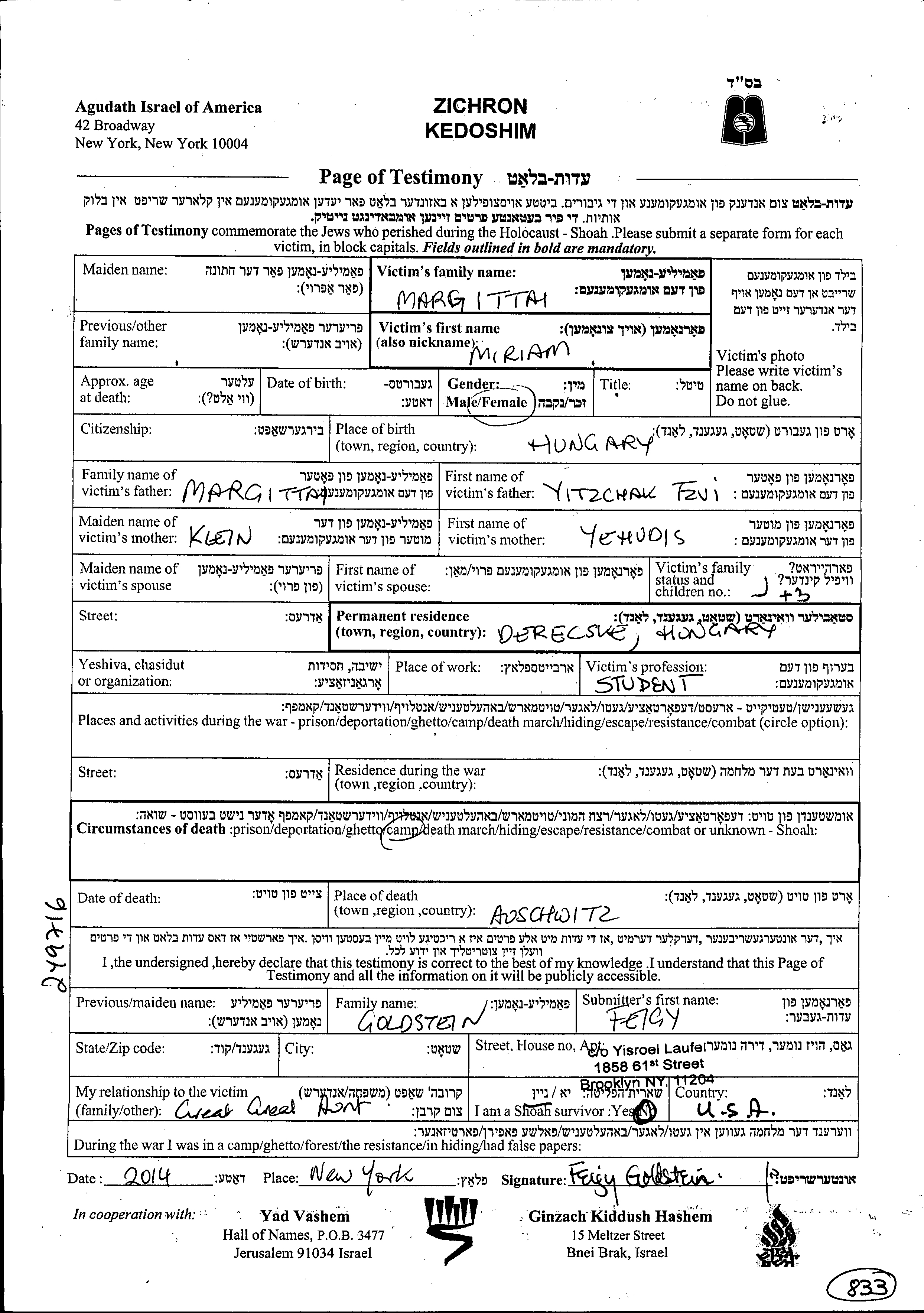 Yad Vashem - Pages of Testimony Names Memorial Collection